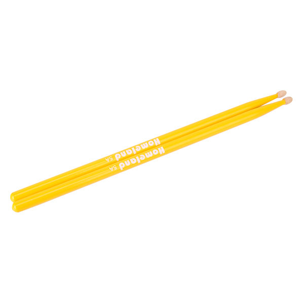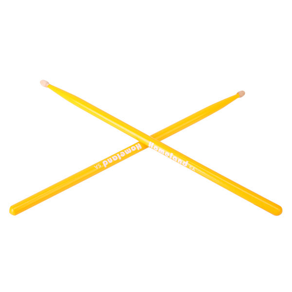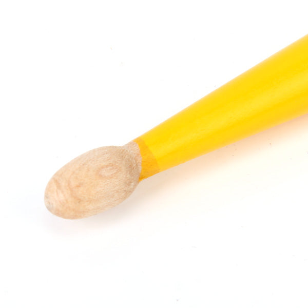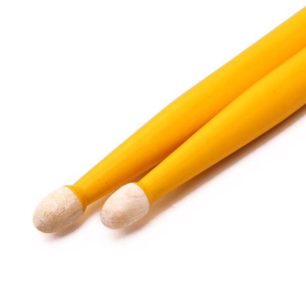 This pair of yellow drumsticks is a necessity for drum playing. They are excellent 5A drumsticks with a slightly oval shaped wood tip that can give a delightful sound. Portable and lightweight, quite easy to hold. Made of fine maple wood, this pair of yellow drumsticks provide you a smooth and anti-slip grip. Fits for all drums and is a great accessory for drum lovers!