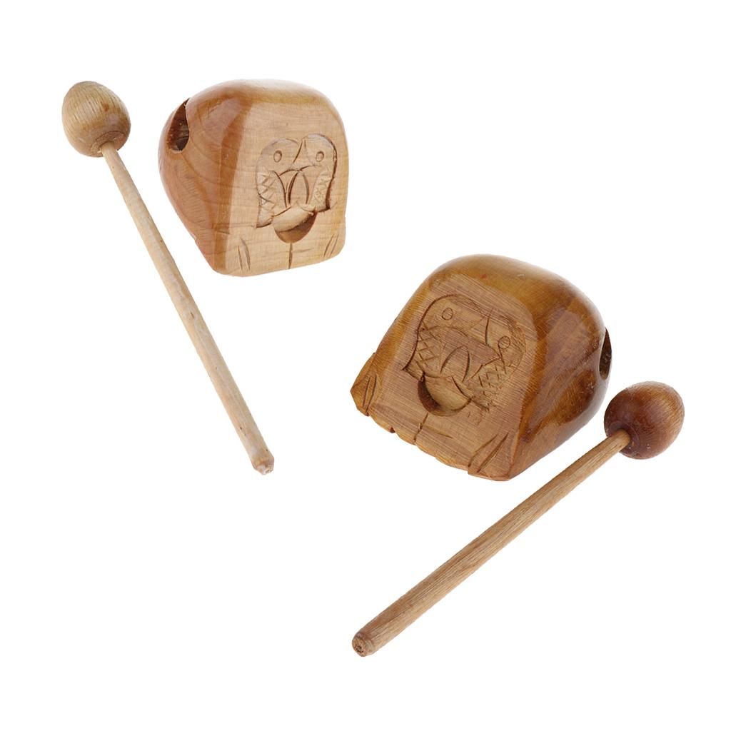 Solid Wood Fish Hand Percussion Hammer Beat Sound Kids Children Toy.