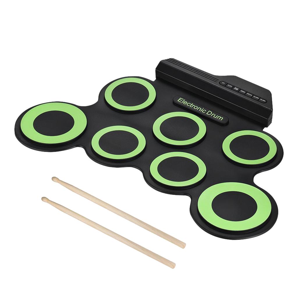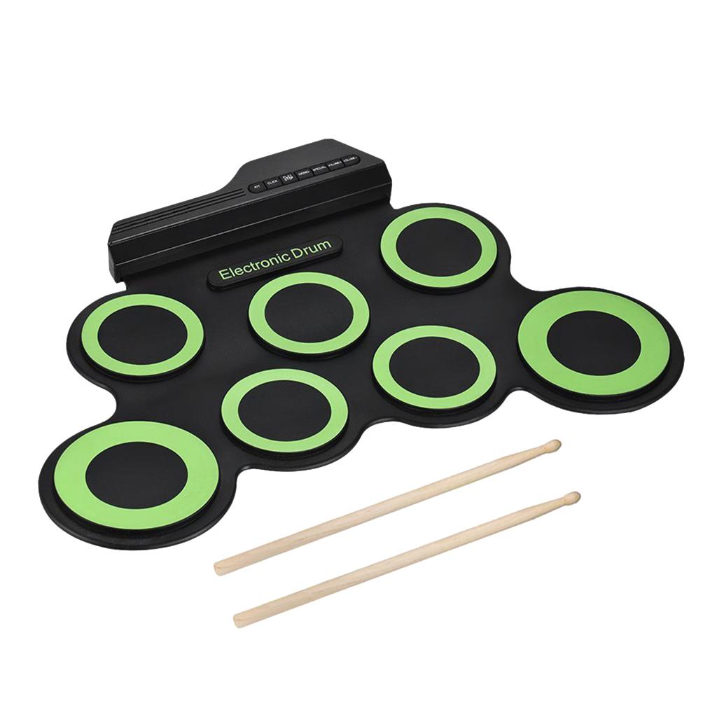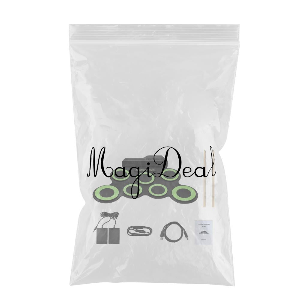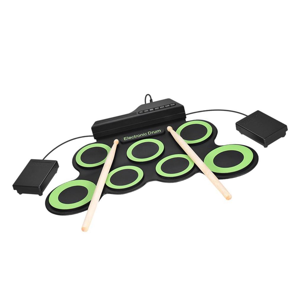Portable Electronic Roll Up Drum Pad Kit with Built-in Speaker Drum Pedals Drumsticks.