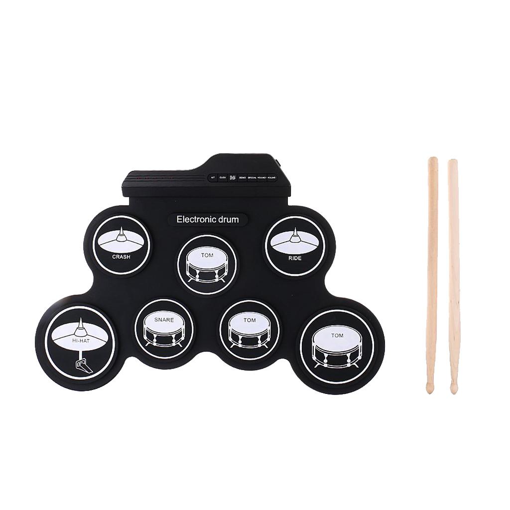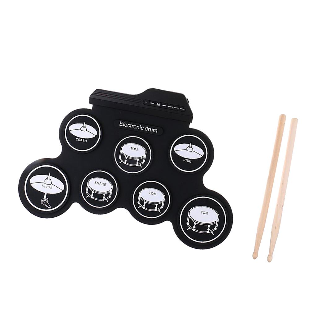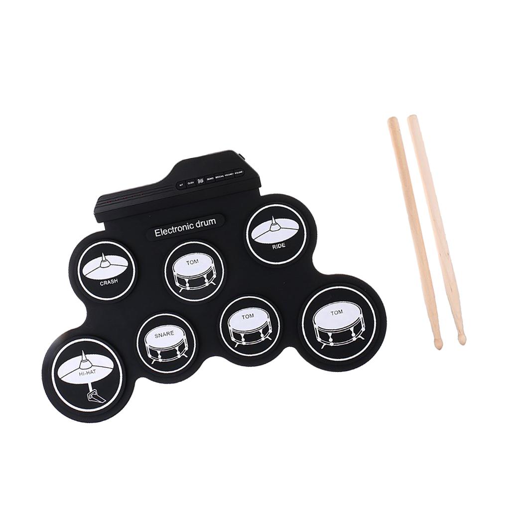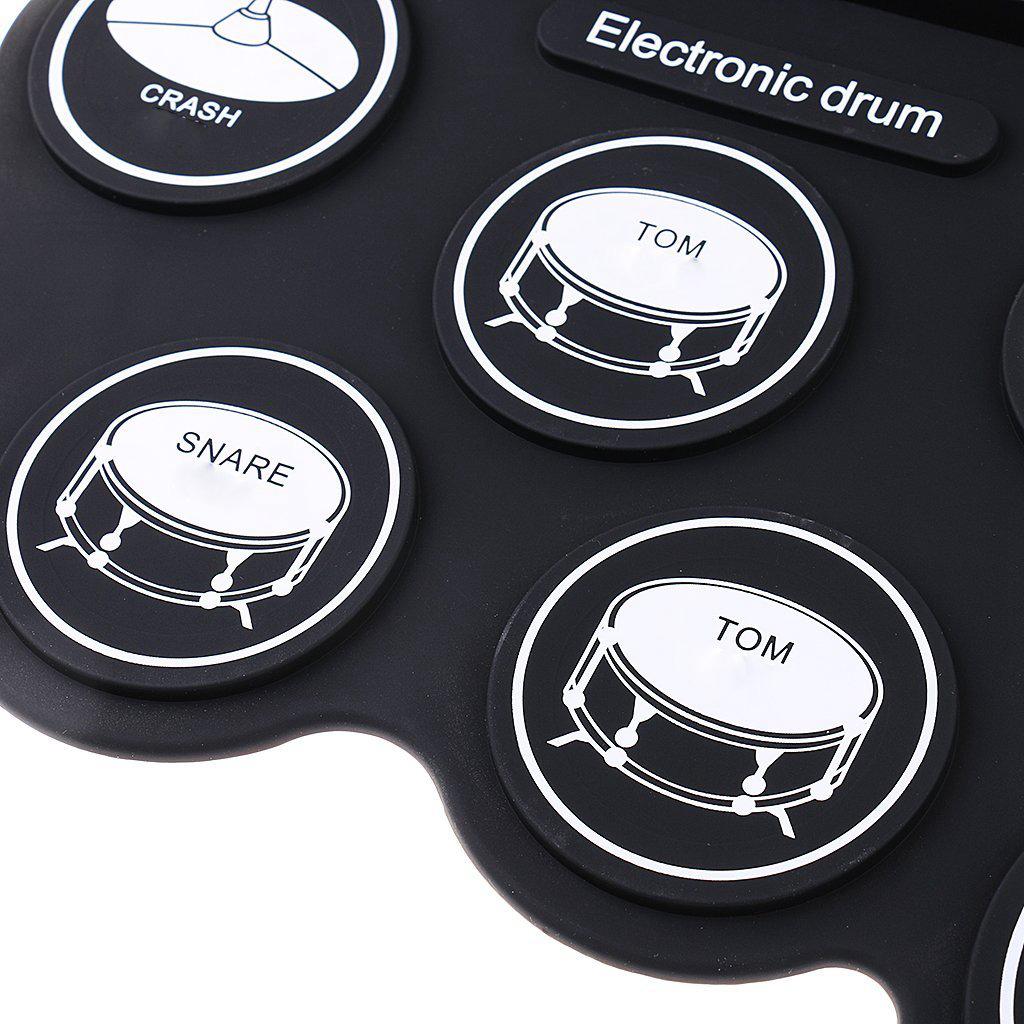 Portable Electronic Roll Up Drum Pad Kit with Built-in Speaker Drum Pedals Drumsticks.