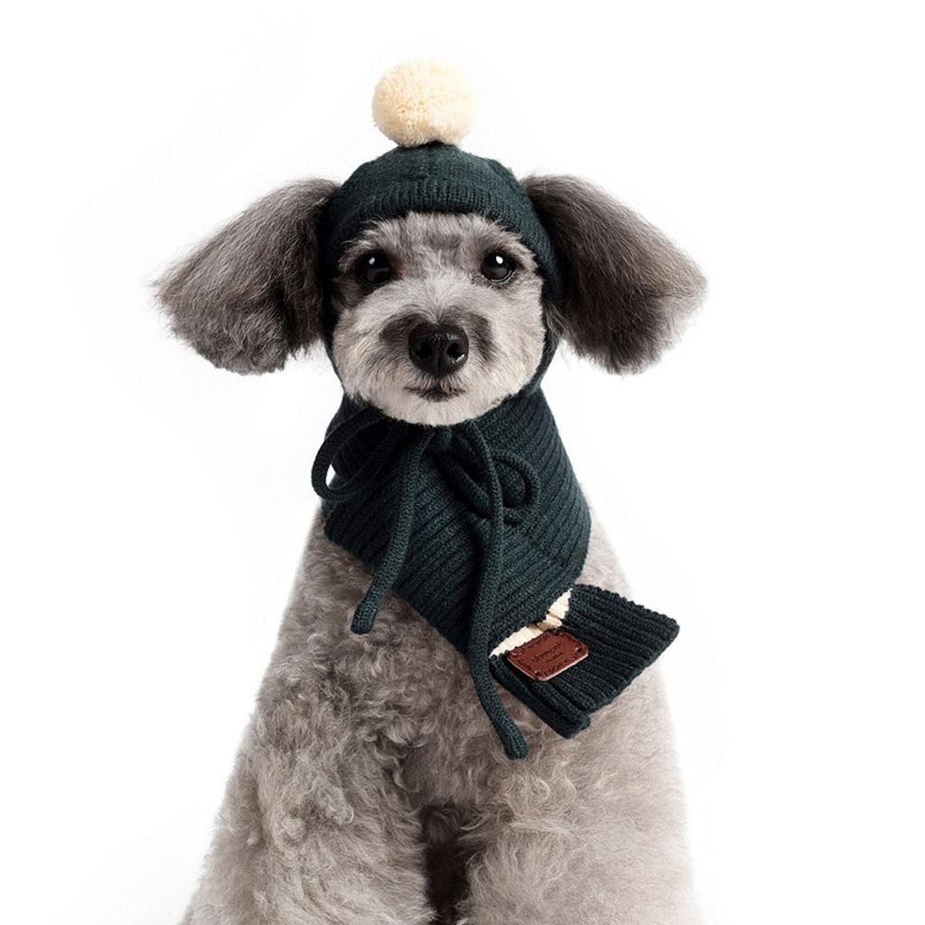 1 Set Dog Pet Puppy Hat Scarf Warmer Pet Clothes for Small Dog Dark Green M