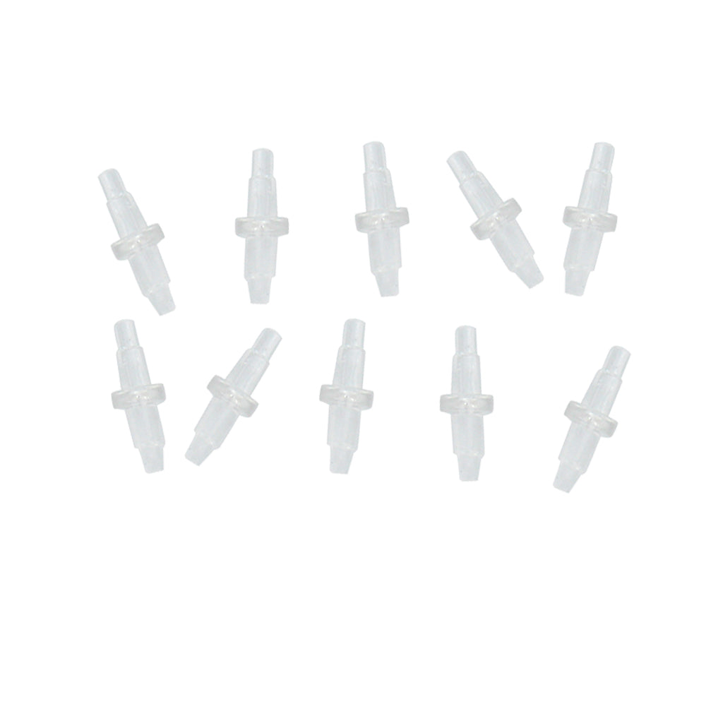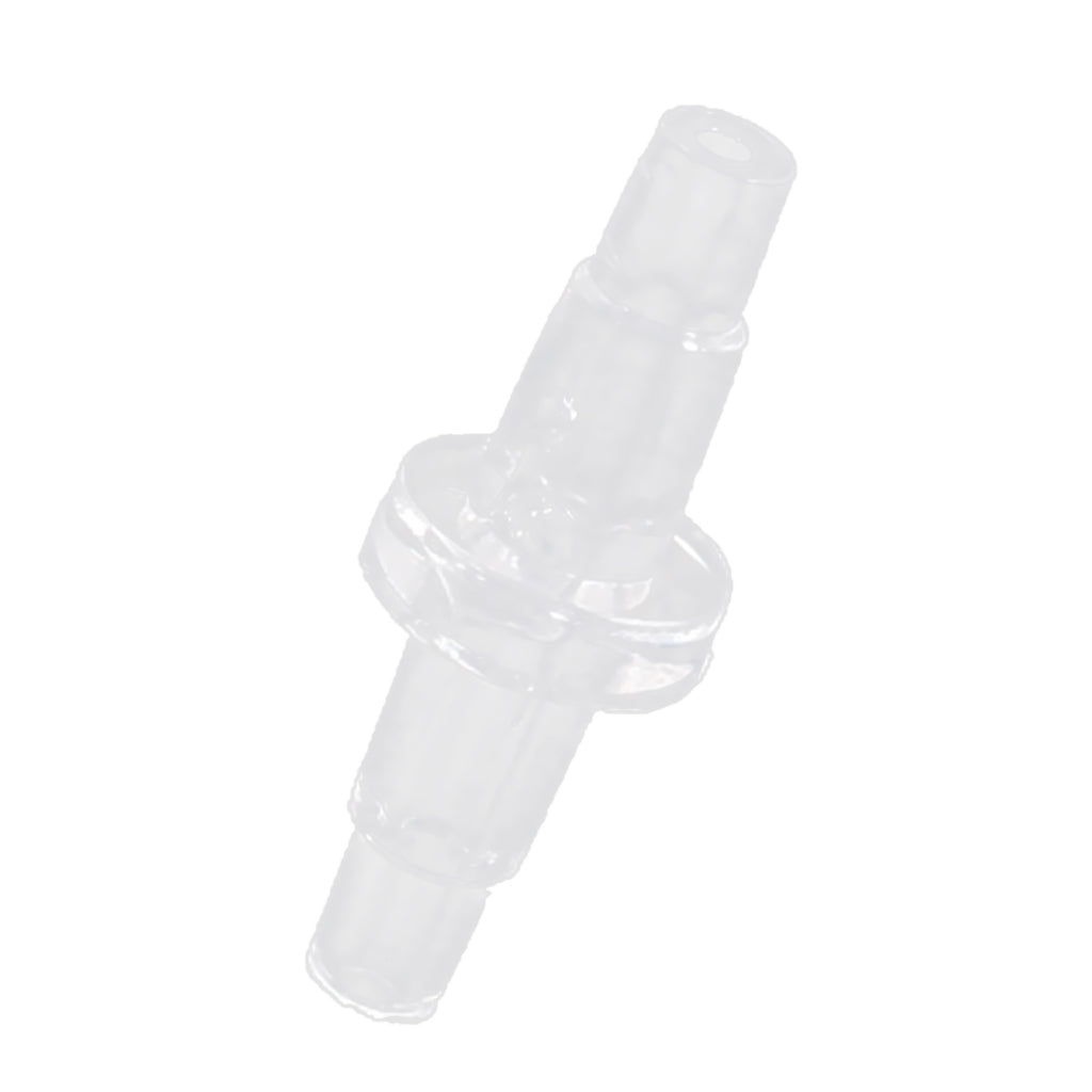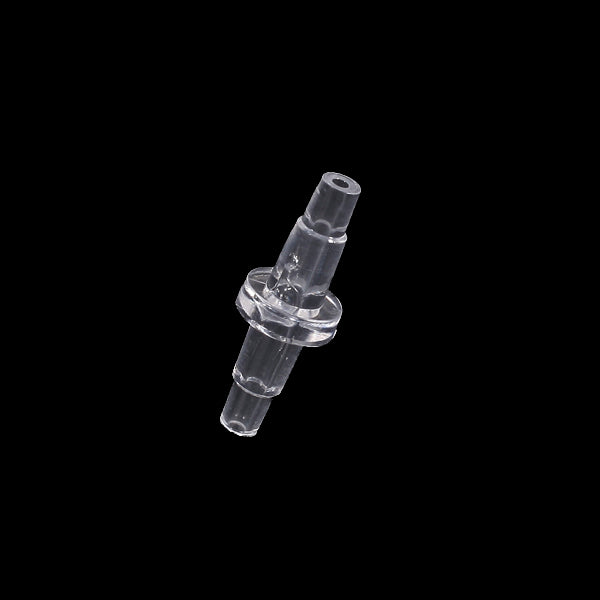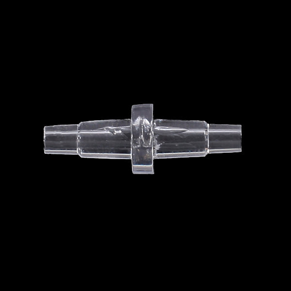 Aquarium 2-way straight connector, enabling connection of spliced air line tubing. Clear-view straight connector will fit standard 4mm-in-diameter air line tubing. This 2-way straight connector measures approx. 1 inch long.