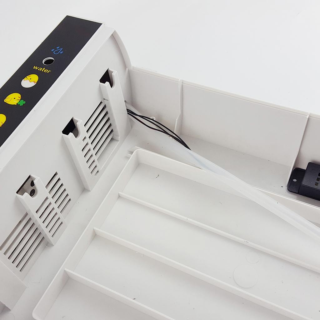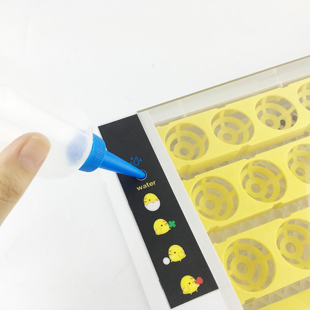 Please add water every one to two days, be careful not drip the water onto the exposed electrics. (Our egg incubator has a water filling nozzle on the surface of the machine, you can use humidifying bottles (included) to add water, more convenient)