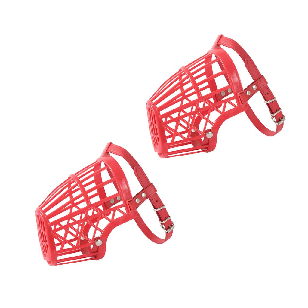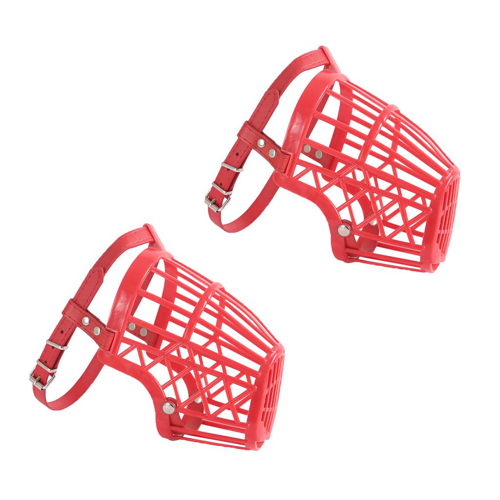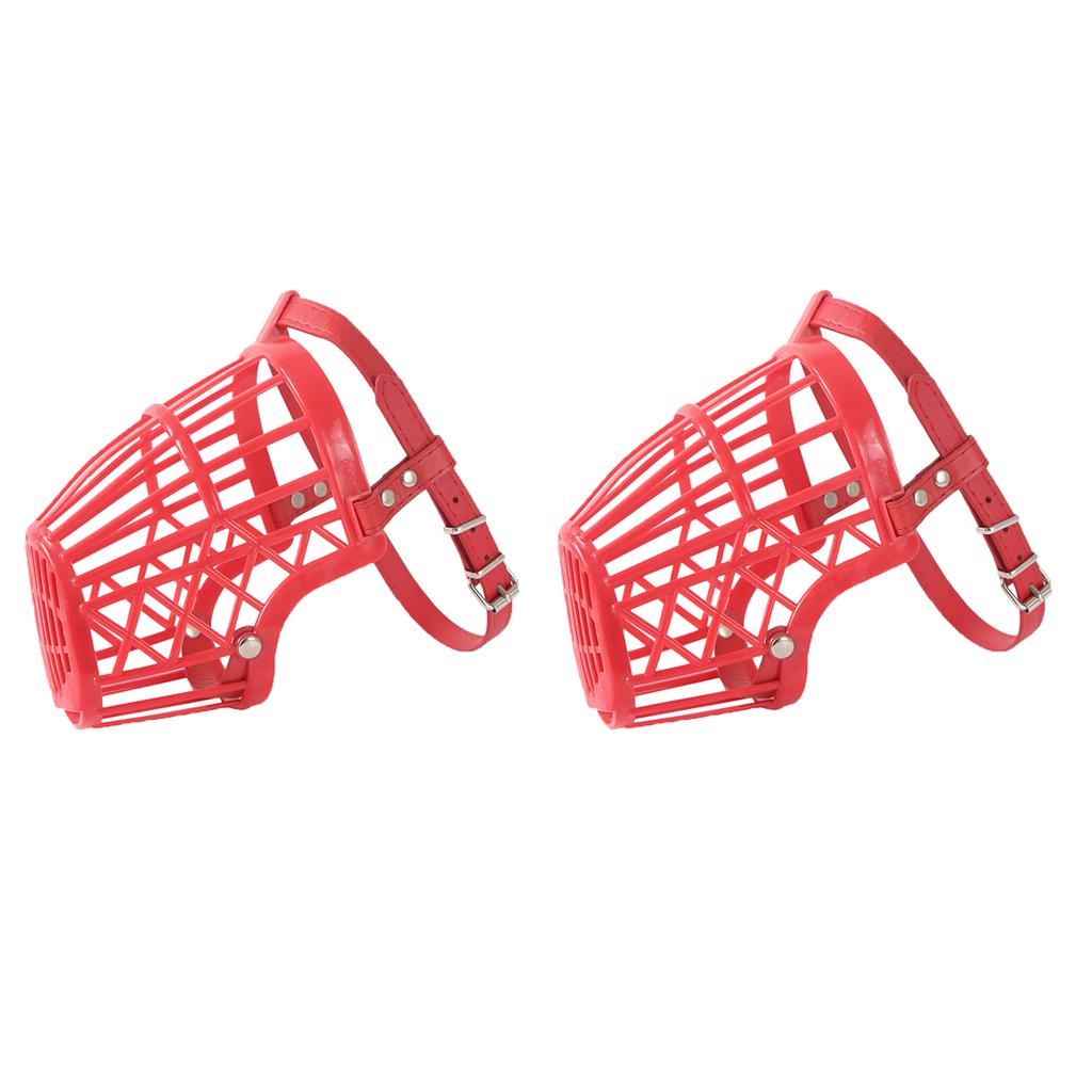 2Pc Adjustable Basket Mouth Muzzle Cover for Dog Training Bark Bite Red#2