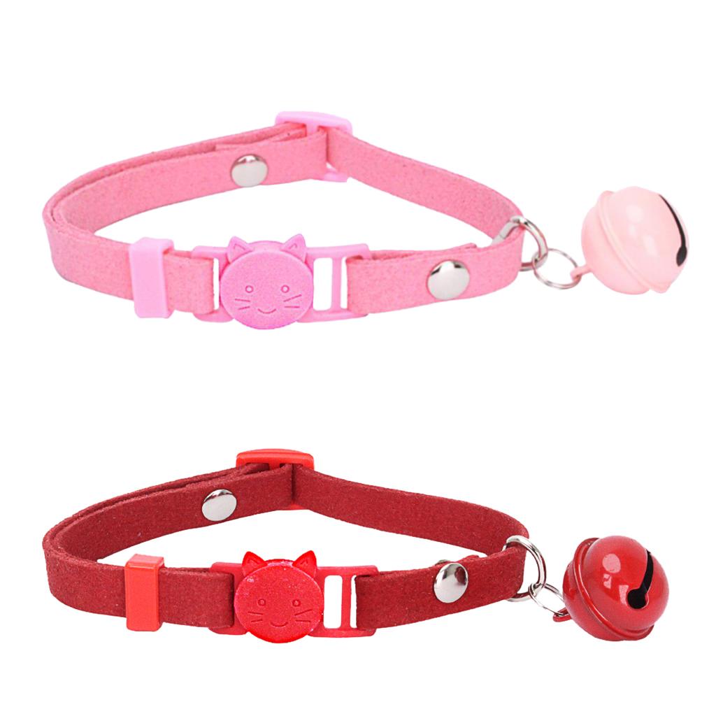 2Pcs Small Pet Puppy Dog Soft Micro Fiber Collar Safety Buckle With Bell