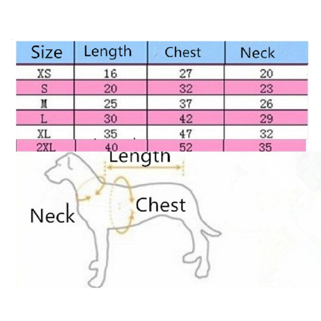 XL: Back: Approx. 35cm/13.78 inch; Chest: Approx. 47cm/18.50 inch; Neck: Approx. 32cm/12.60 inch