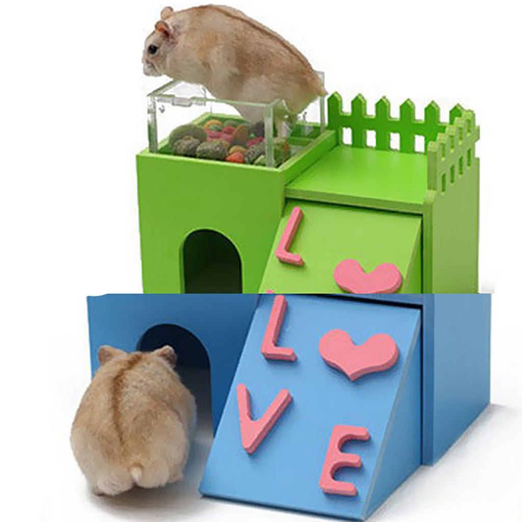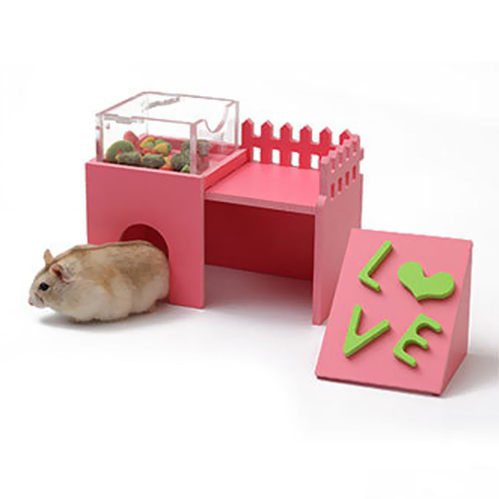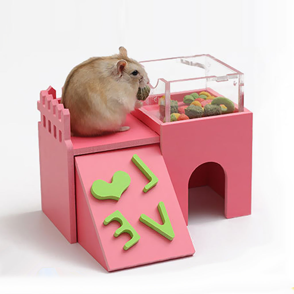 3 in 1 small animals castle: Hut Cave + Ladder Toy + Feeder Bowl.
