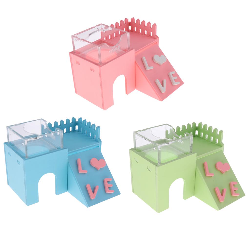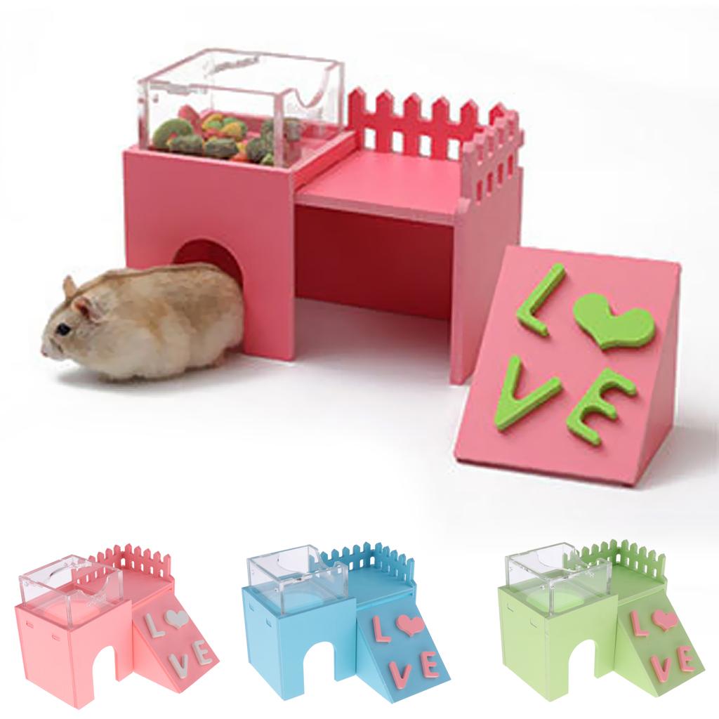 3 in 1 small animals castle: Hut Cave + Ladder Toy + Feeder Bowl.