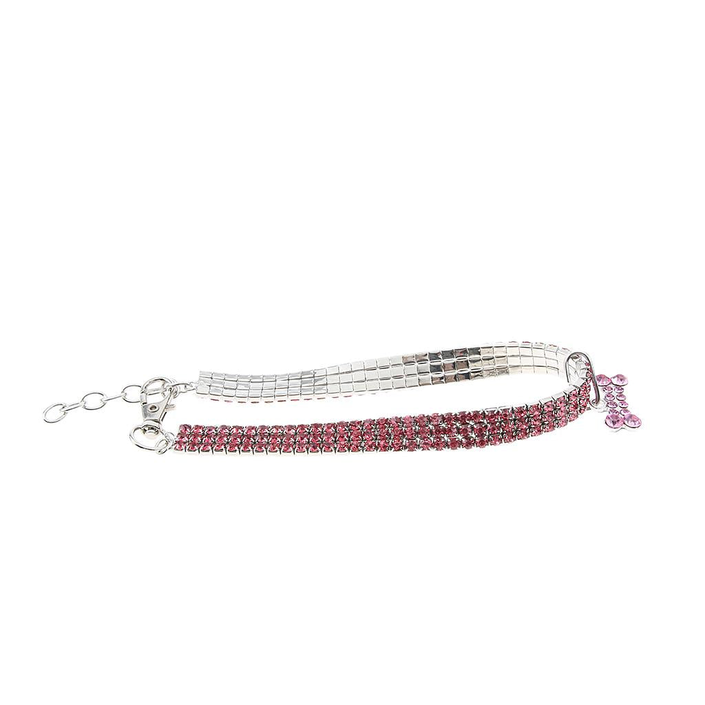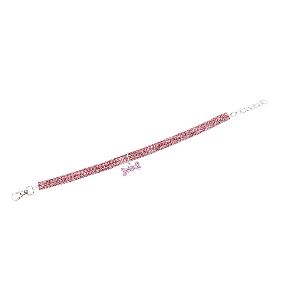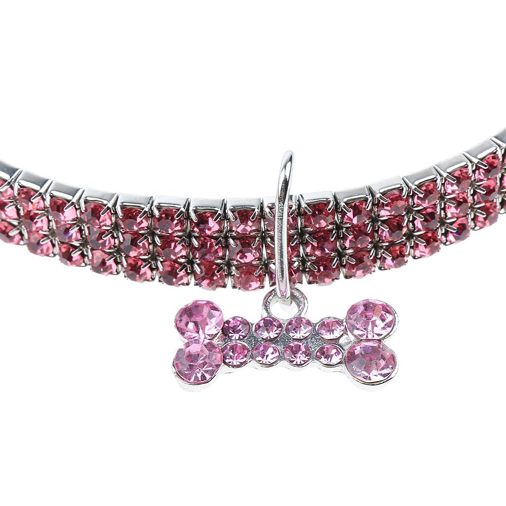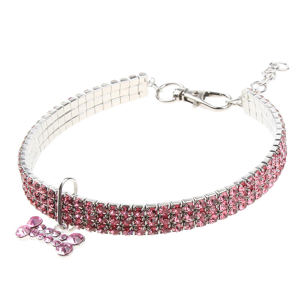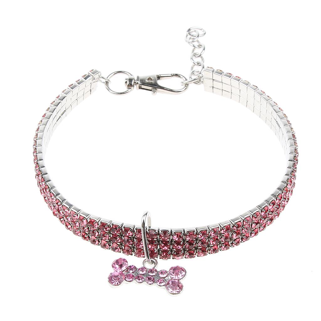 3 Rows Small Dog Necklace Rhinestone Bling Collars with Bone Pendant Pink L