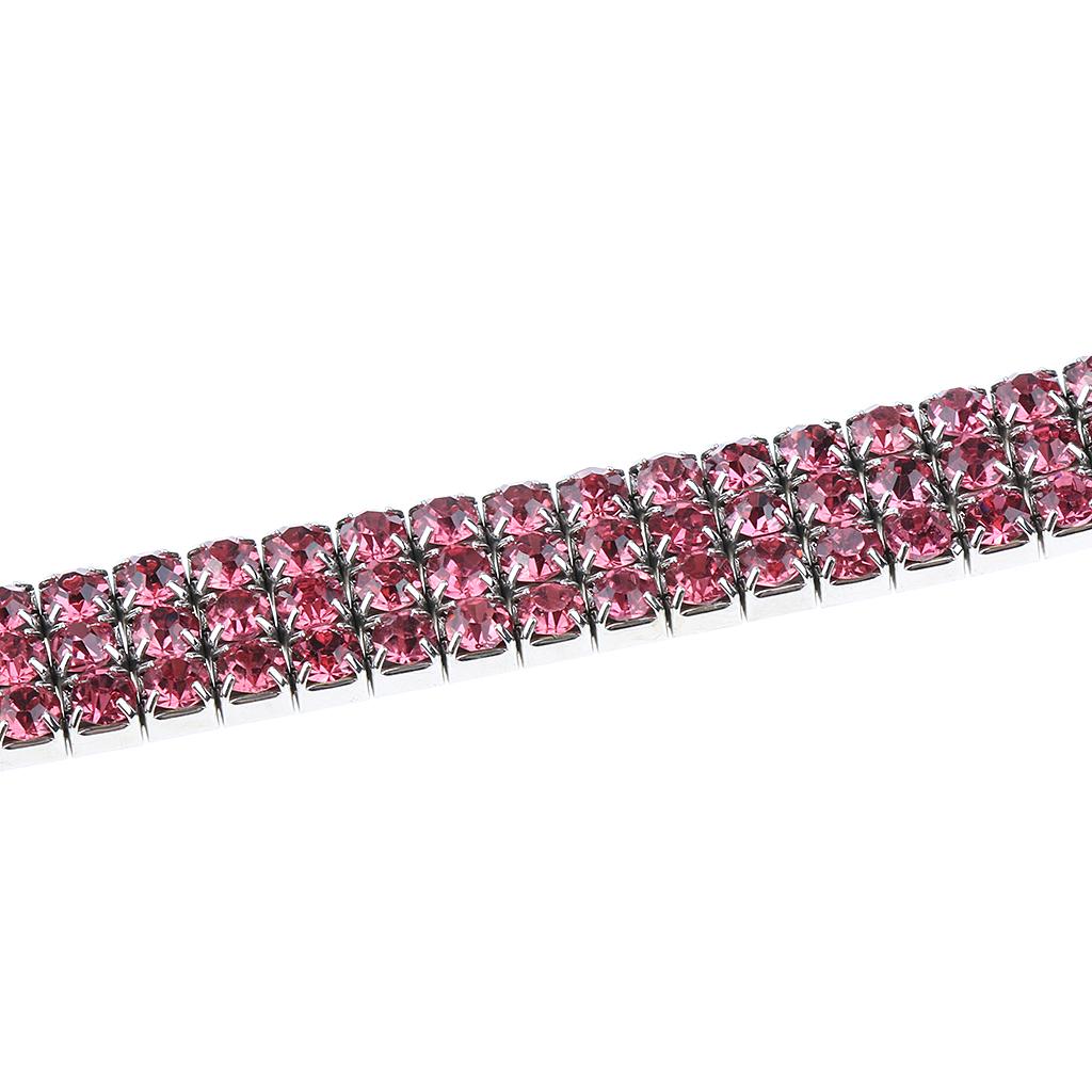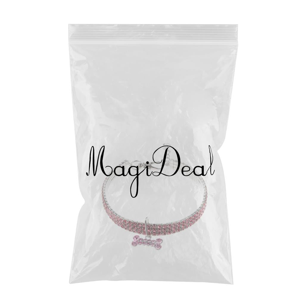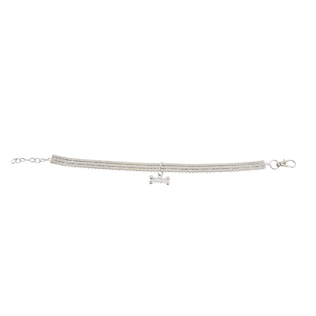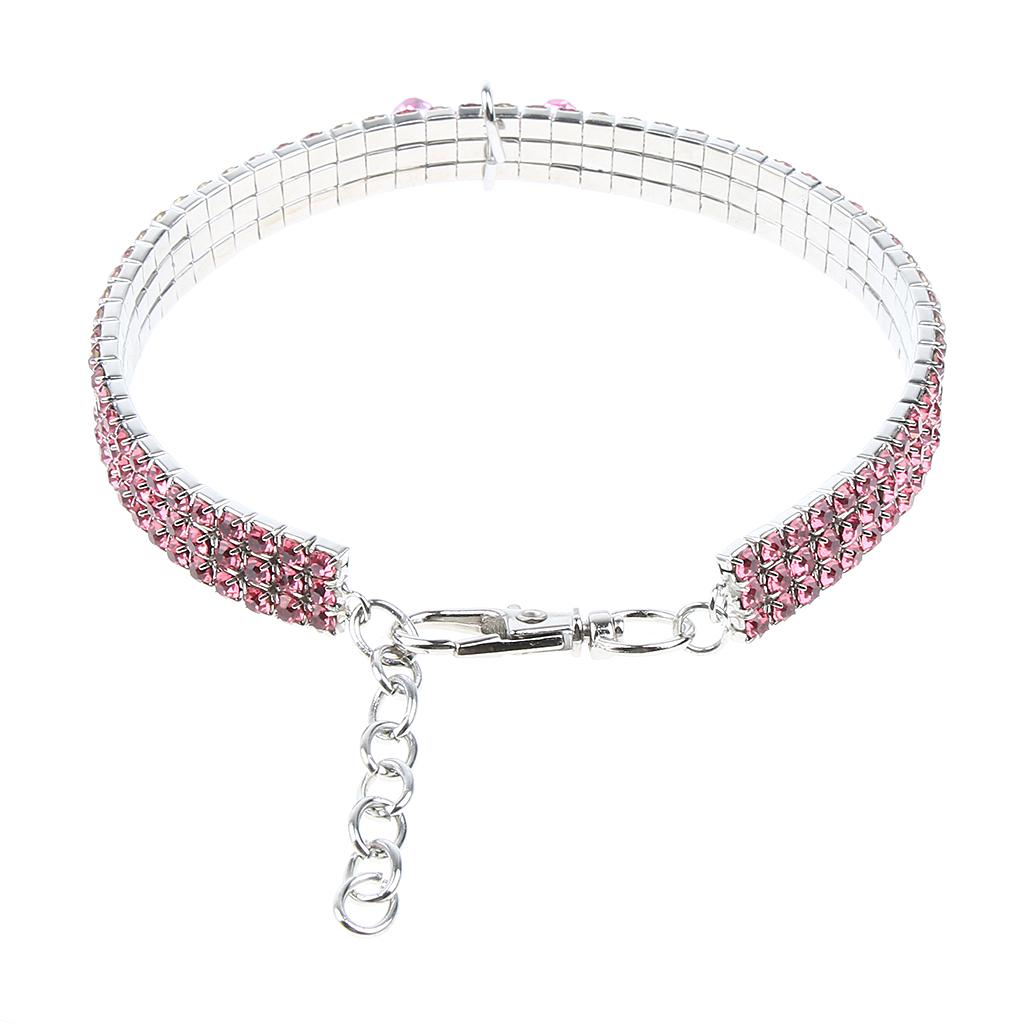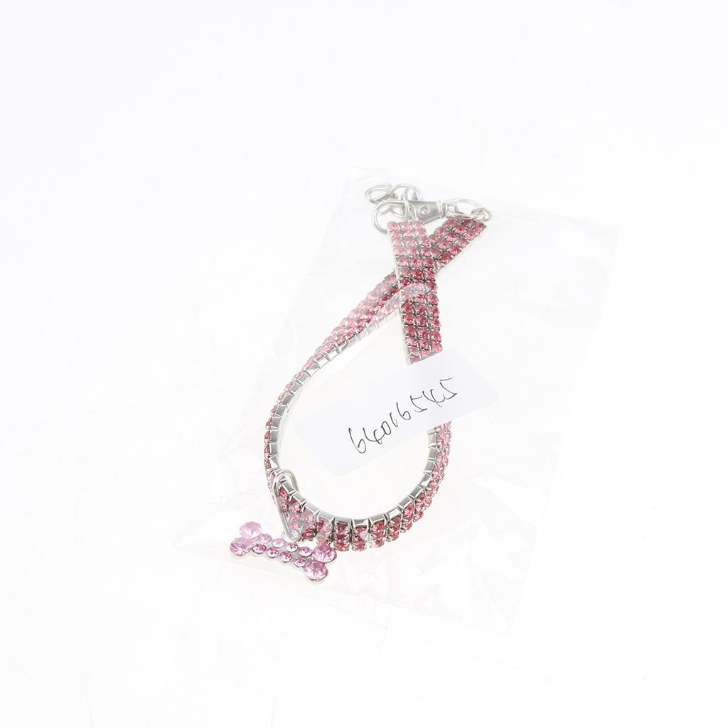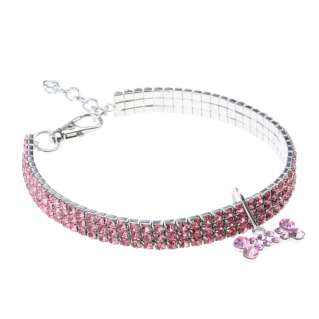 3 Rows Small Dog Necklace Rhinestone Bling Collars with Bone Pendant Pink L