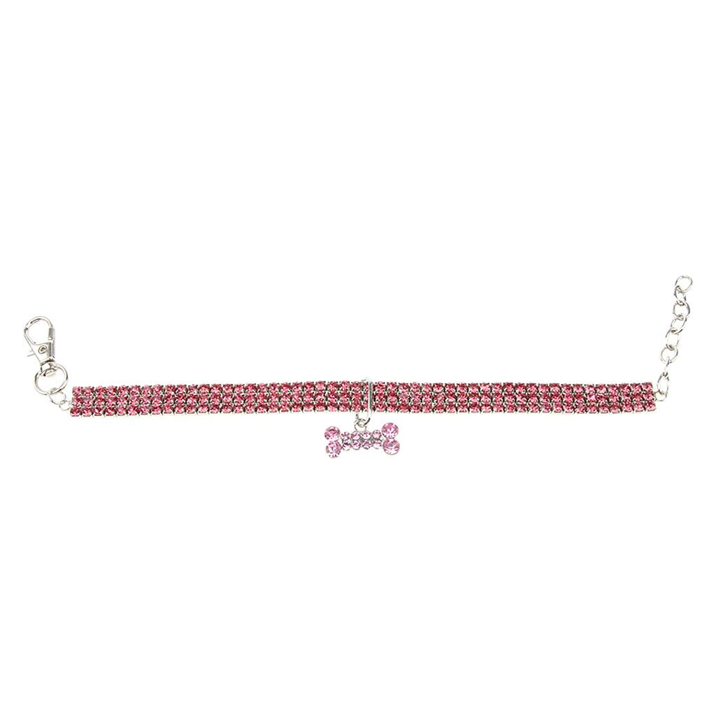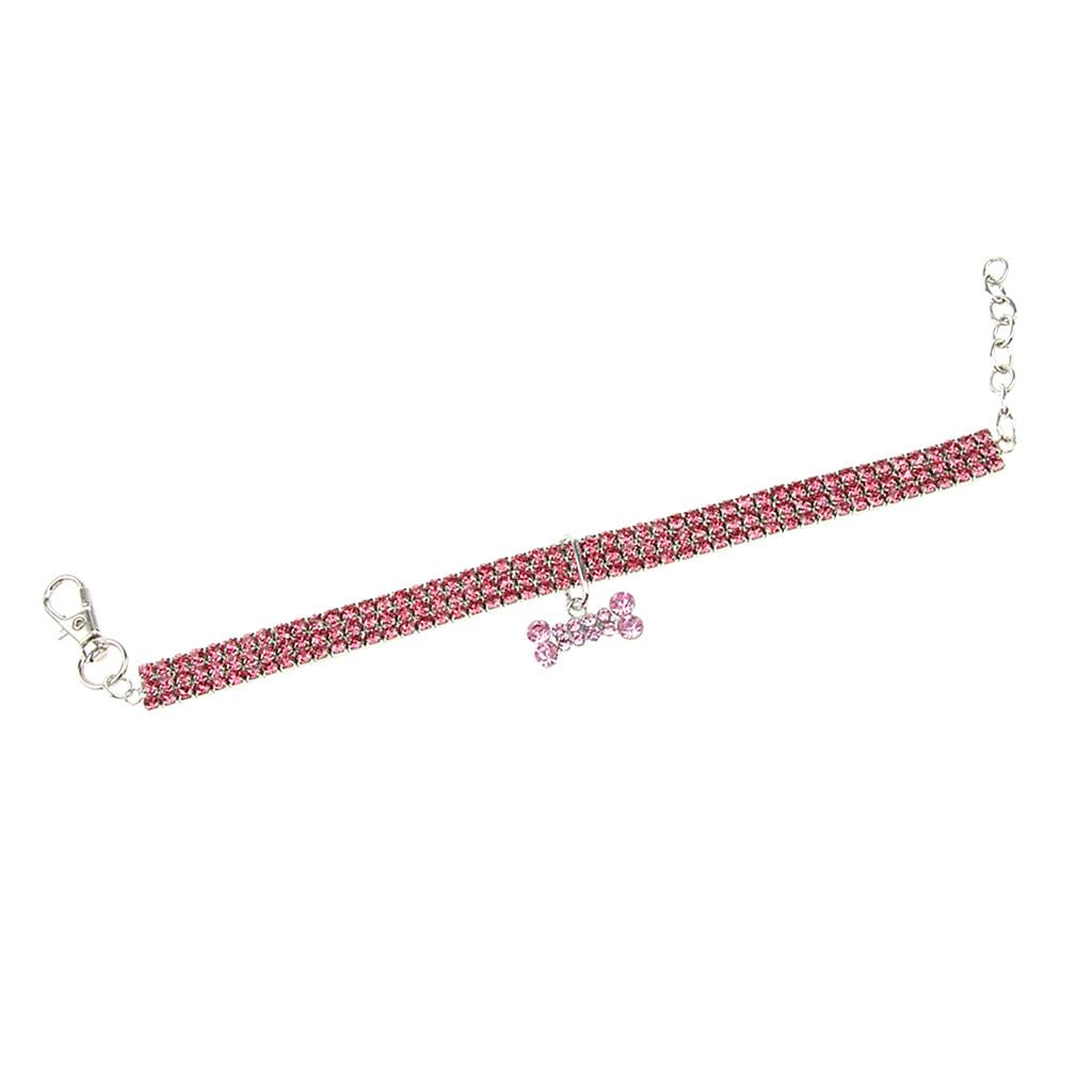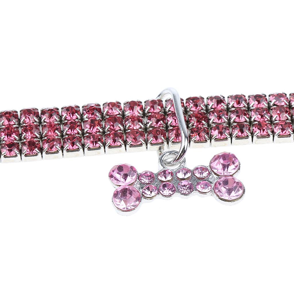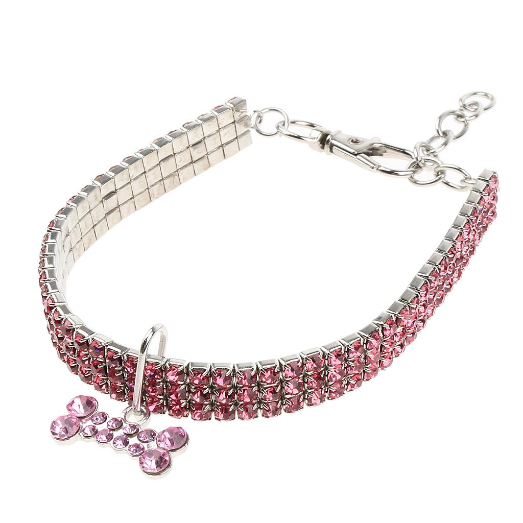 3 Rows Small Dog Necklace Rhinestone Bling Collars with Bone Pendant Pink M