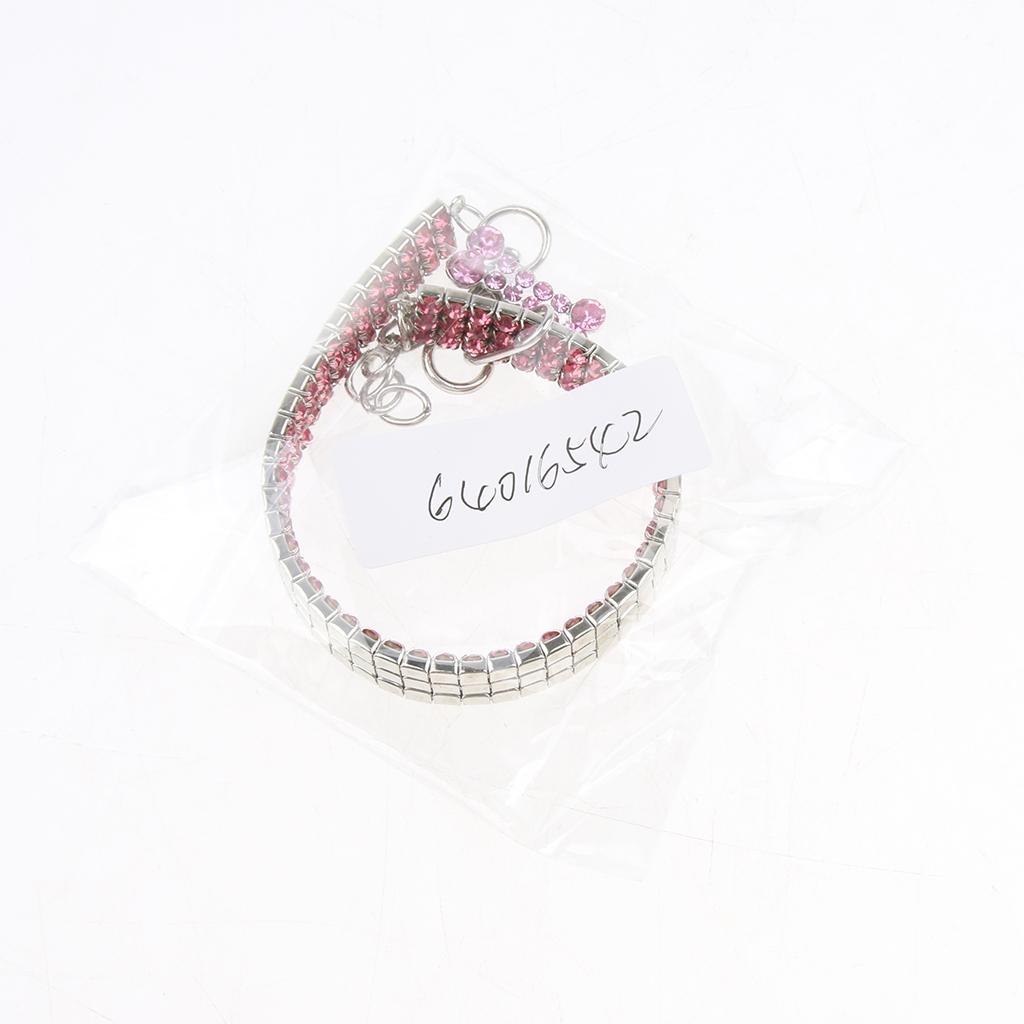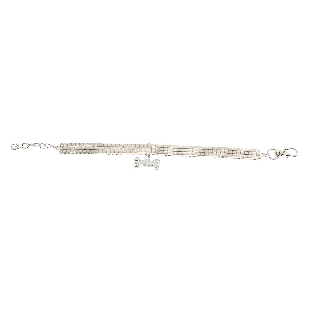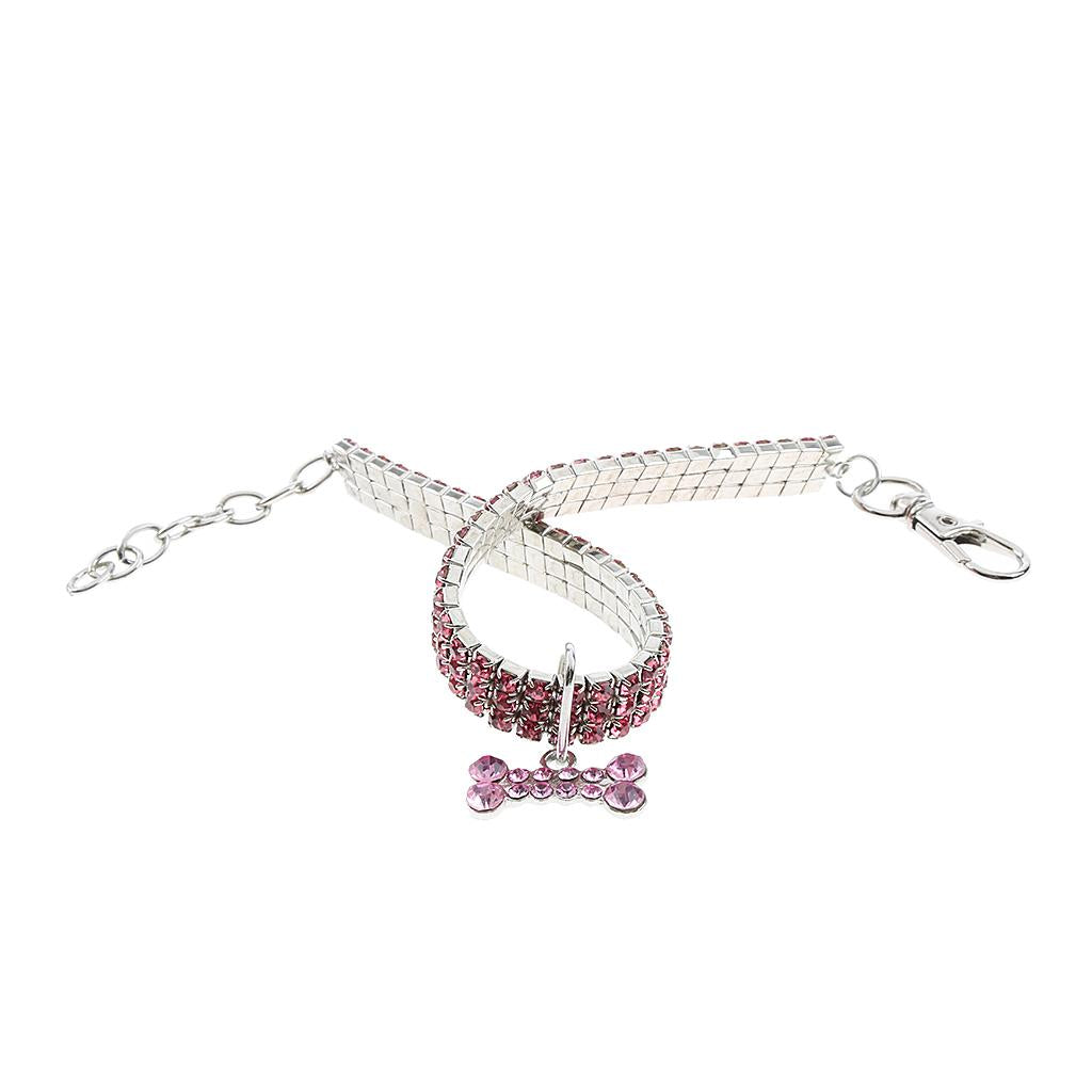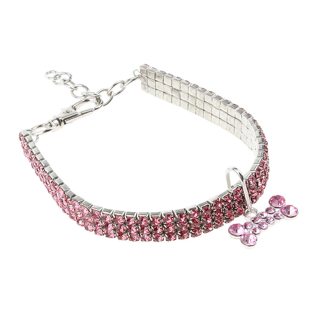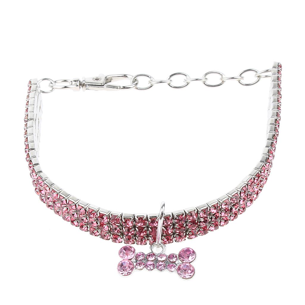 3 Rows Small Dog Necklace Rhinestone Bling Collars with Bone Pendant Pink M
