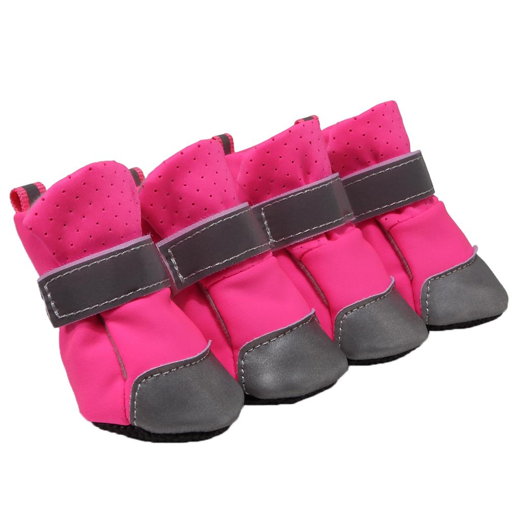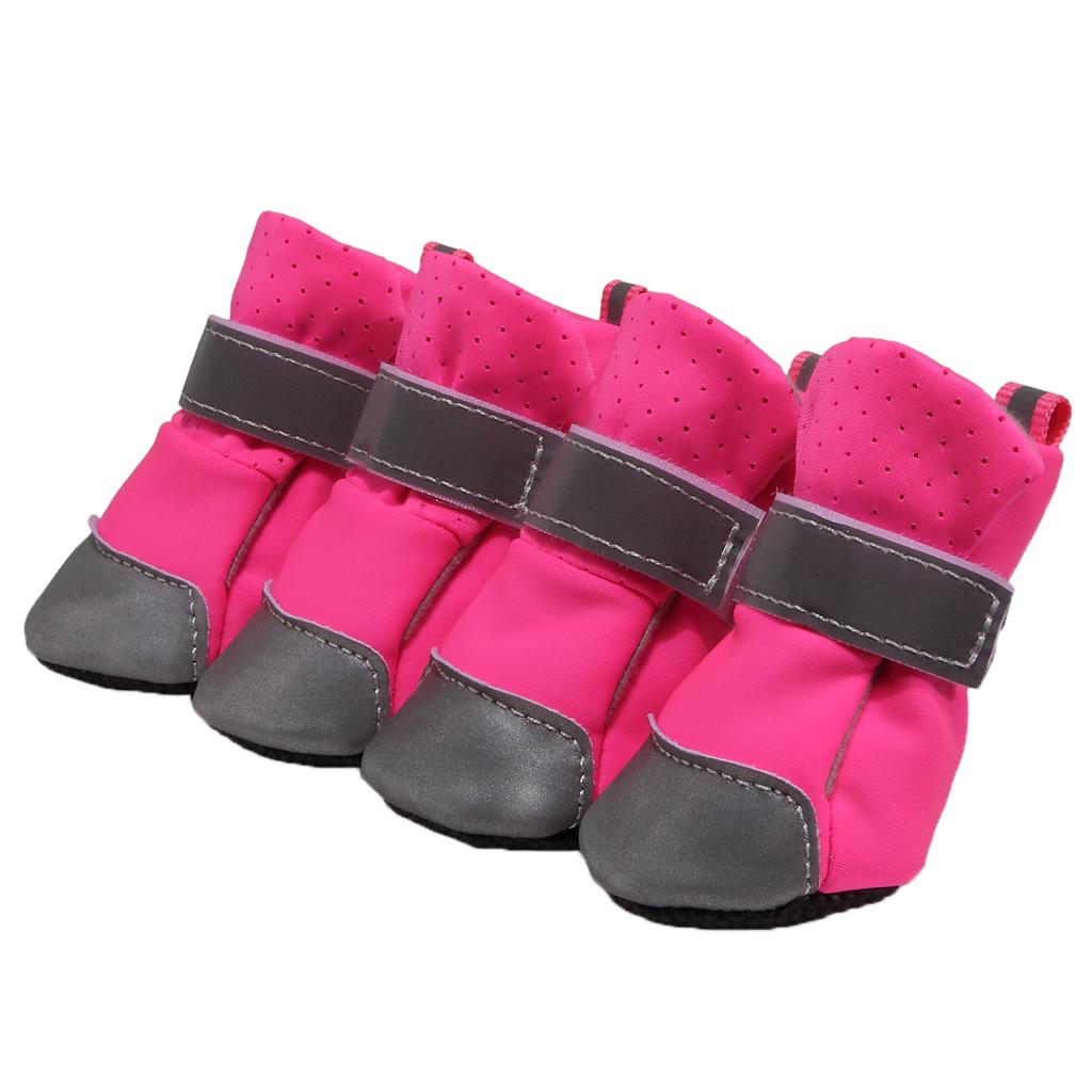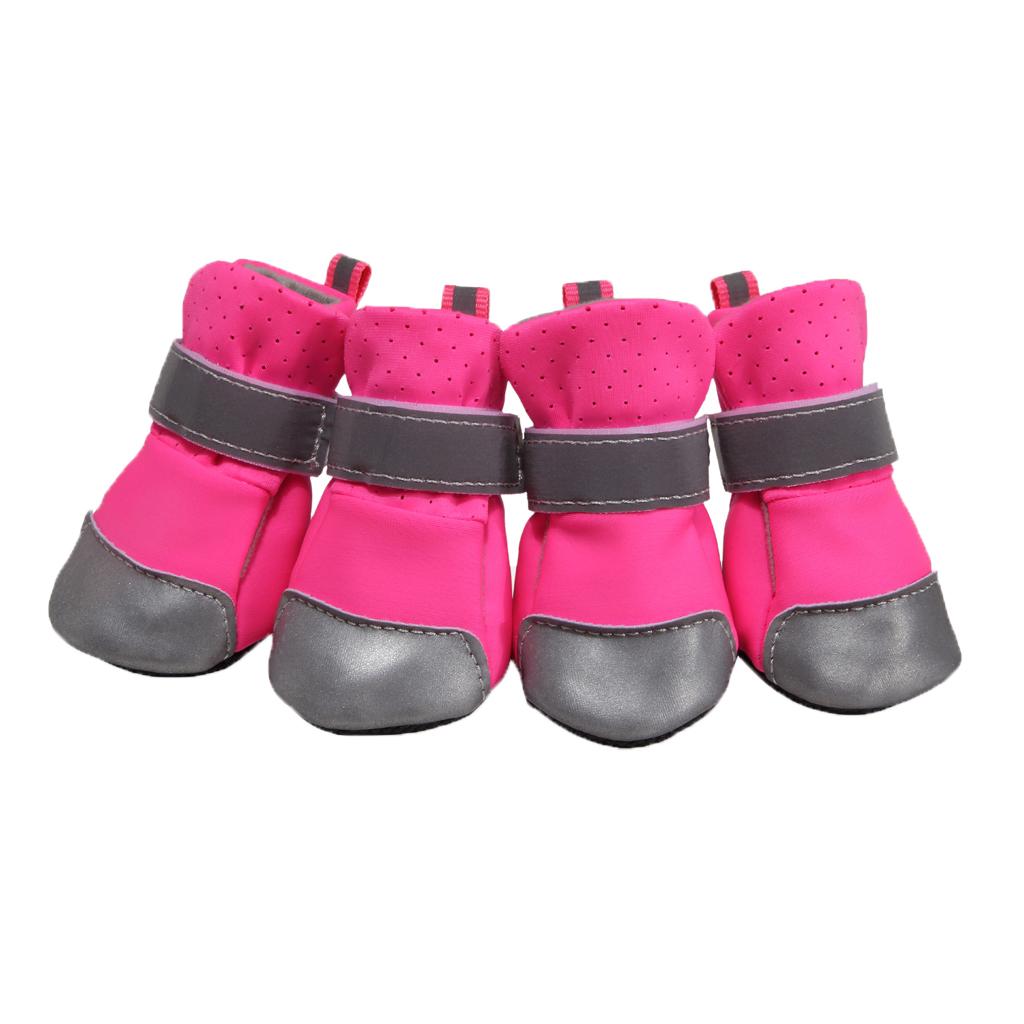 4 Pcs Dog Pet Breathable Boots Puppy Outdoor Warm Anti-Slip Shoes Rose S