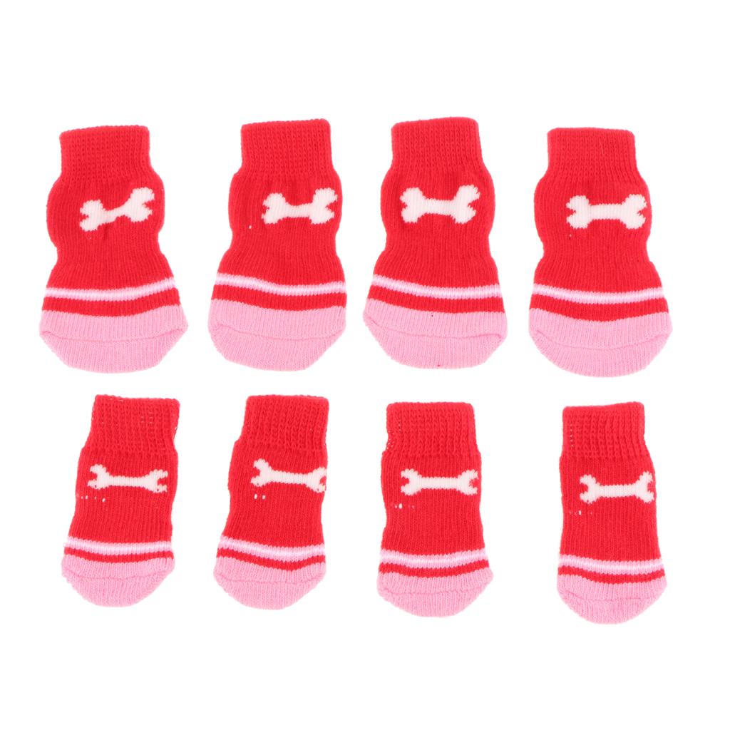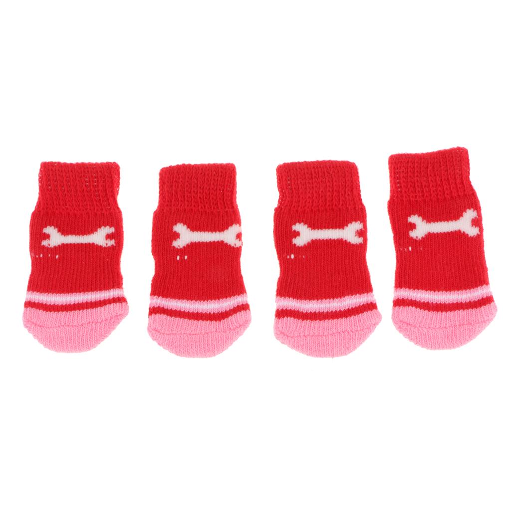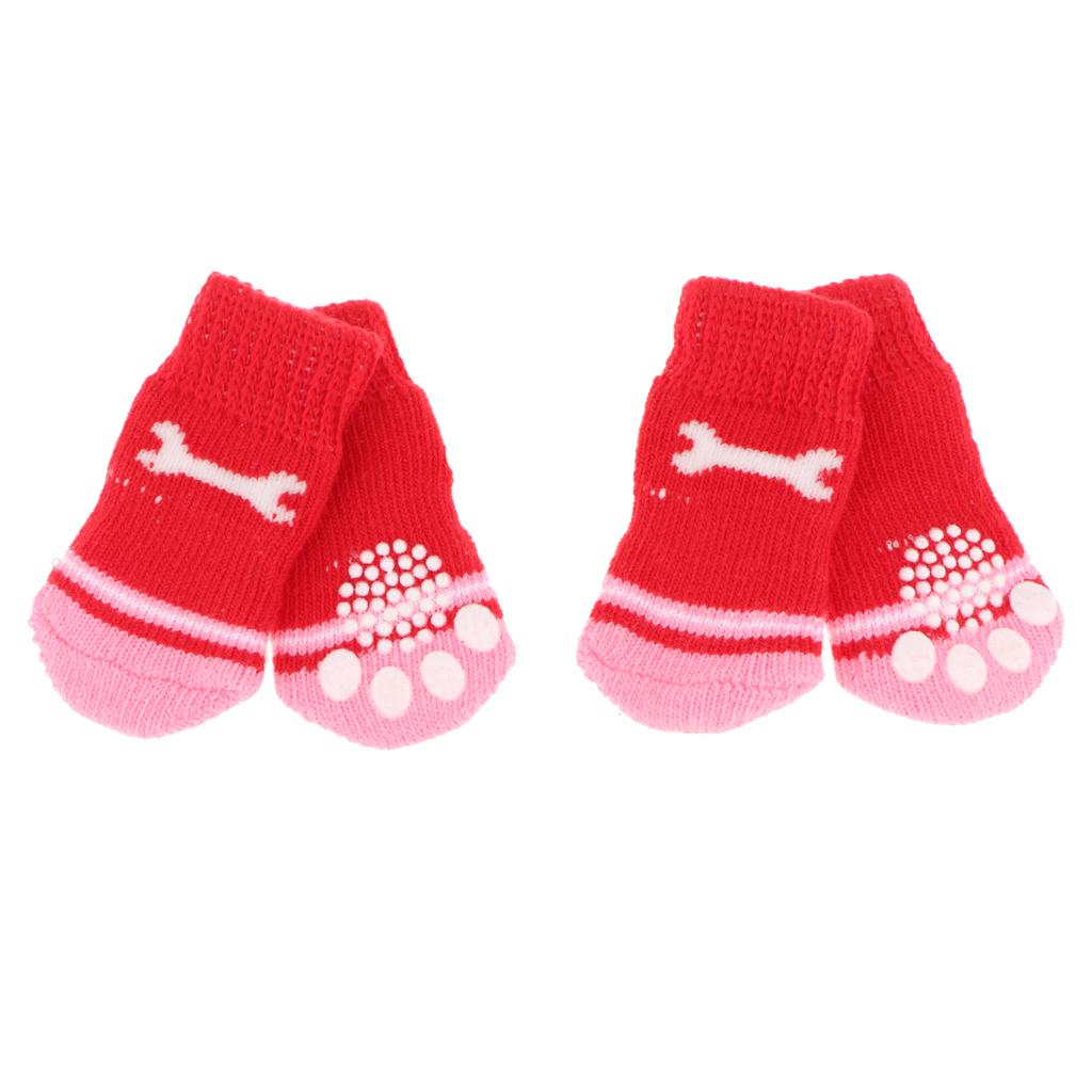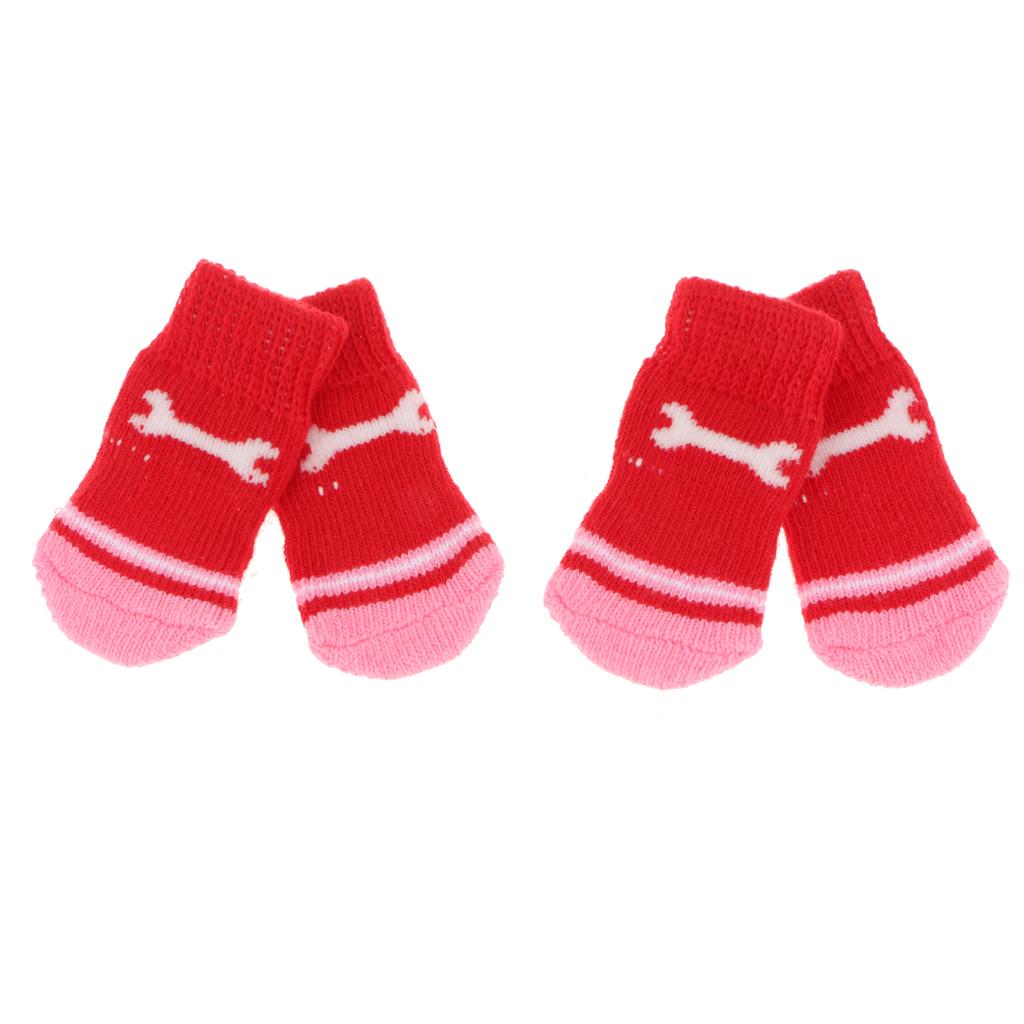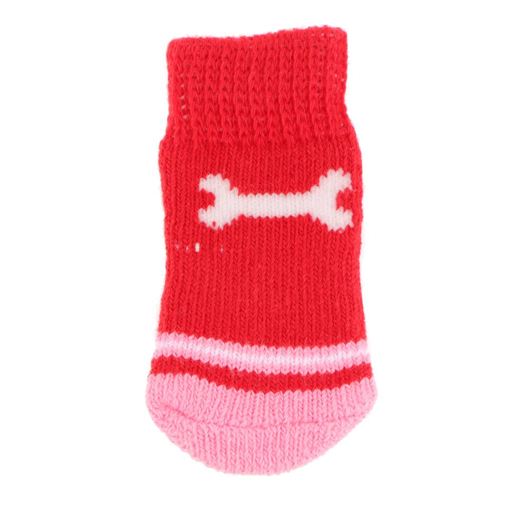4 Piece Bone Print Pet Non-slip Botton Socket Indoor Wear Warm Socks Red S