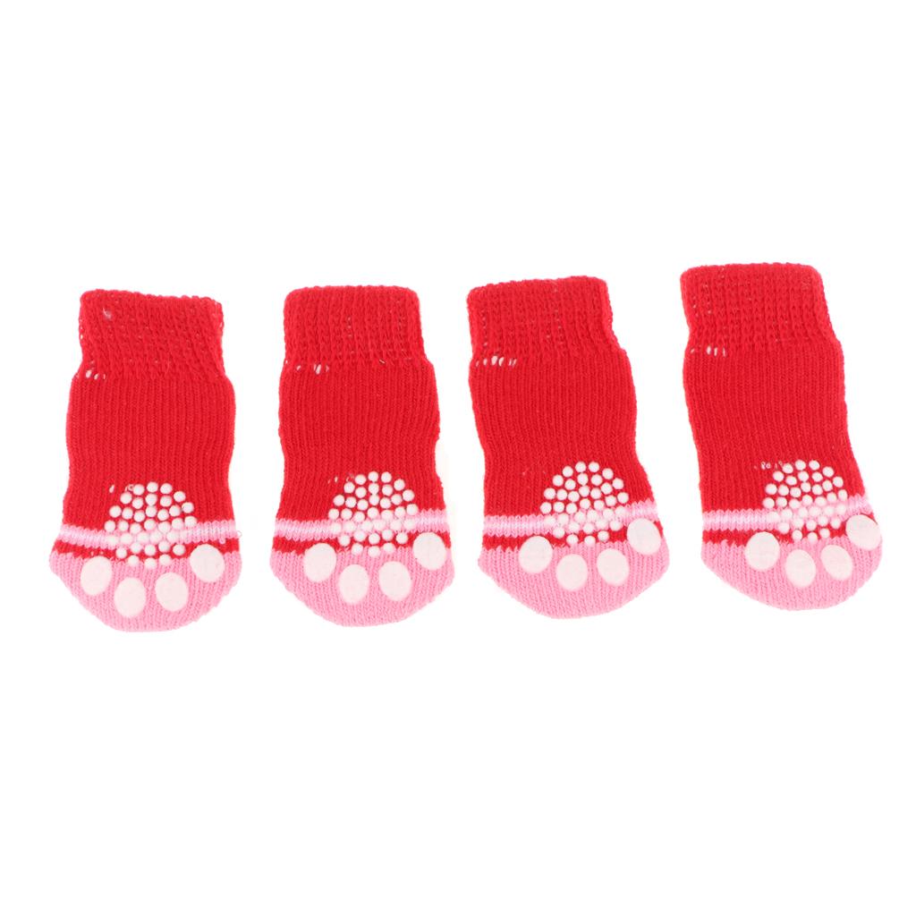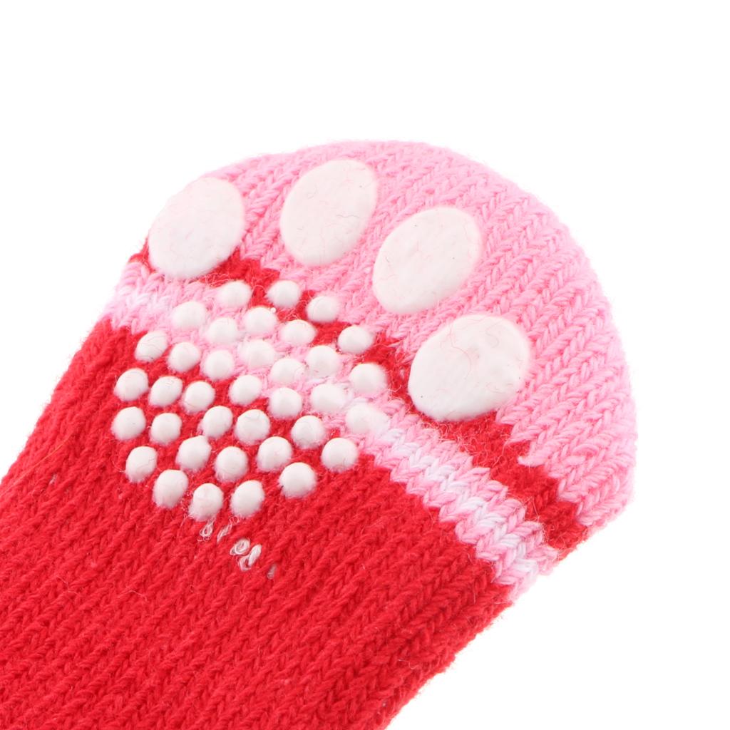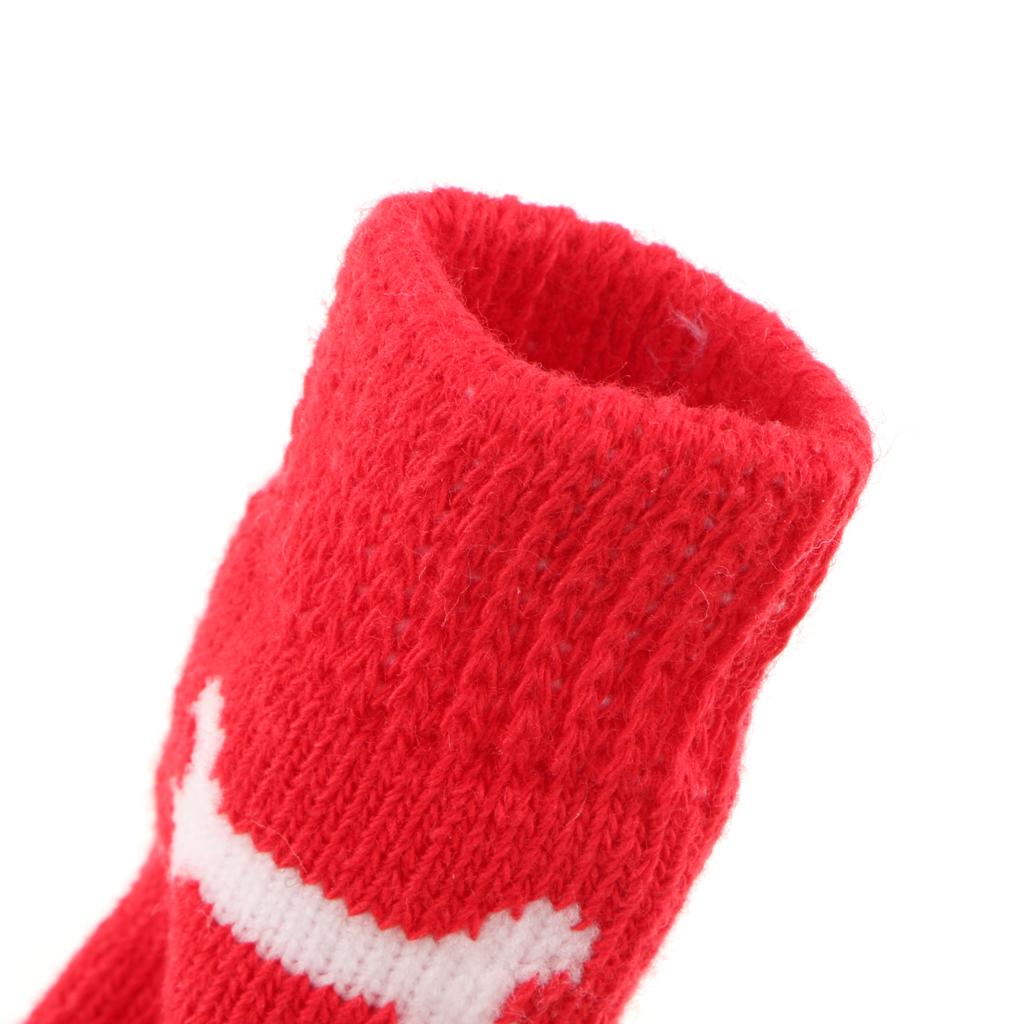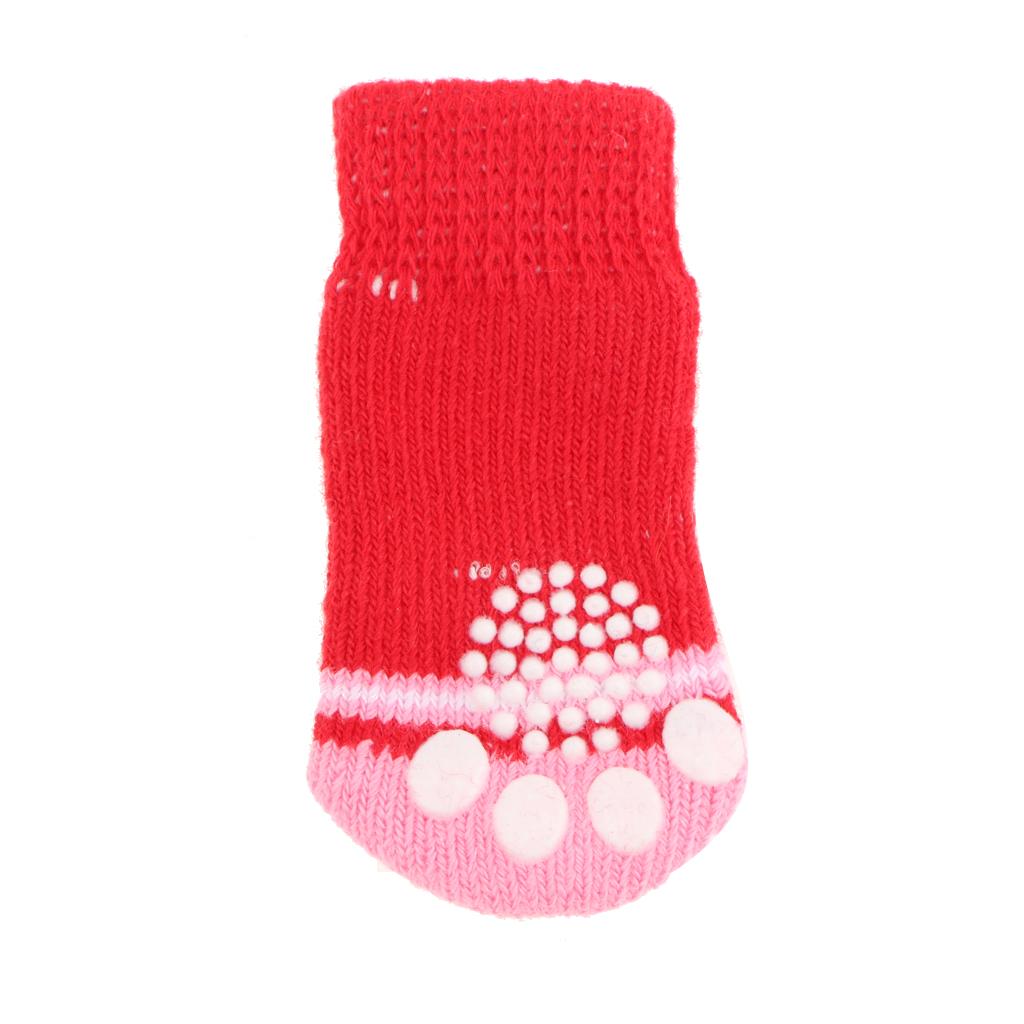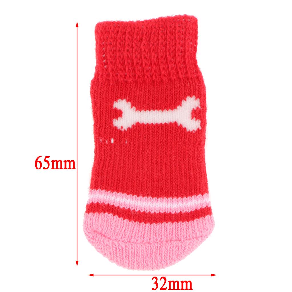 4 Piece Bone Print Pet Non-slip Botton Socket Indoor Wear Warm Socks Red S