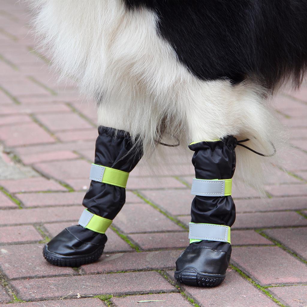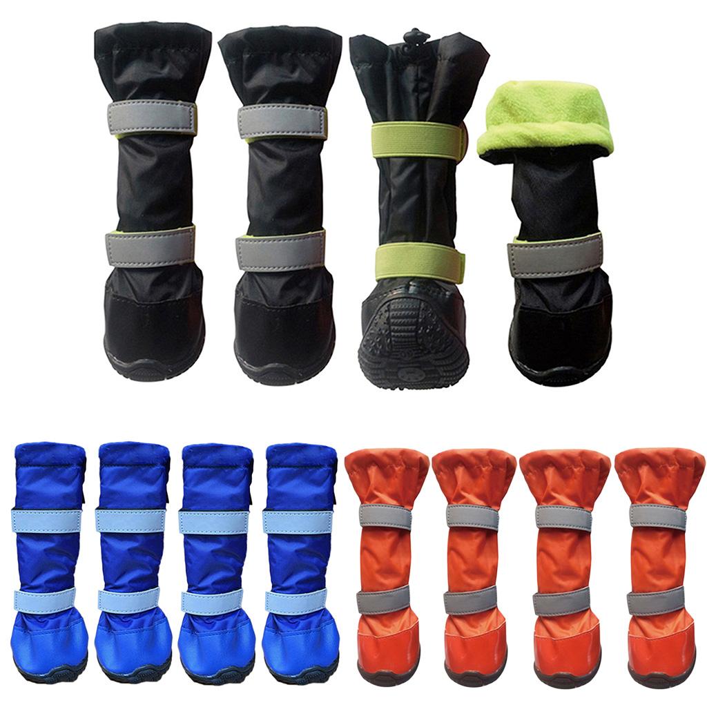 Rain boots with waterproof oxford cloth and lined with warm fabric, anti-slip rubber bottom, your pet will feel comfortable