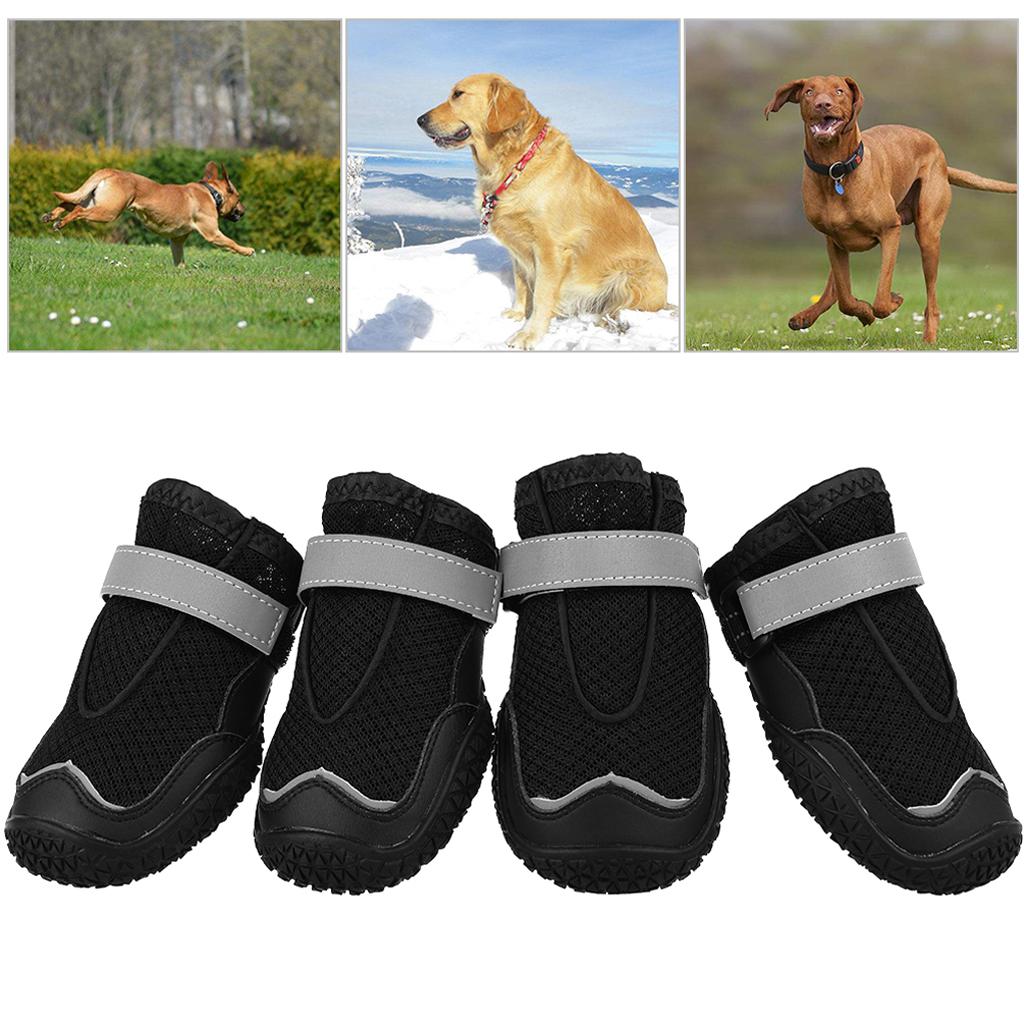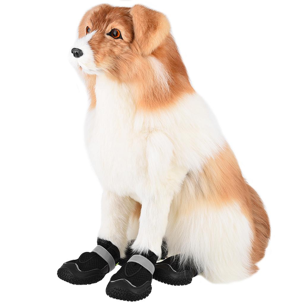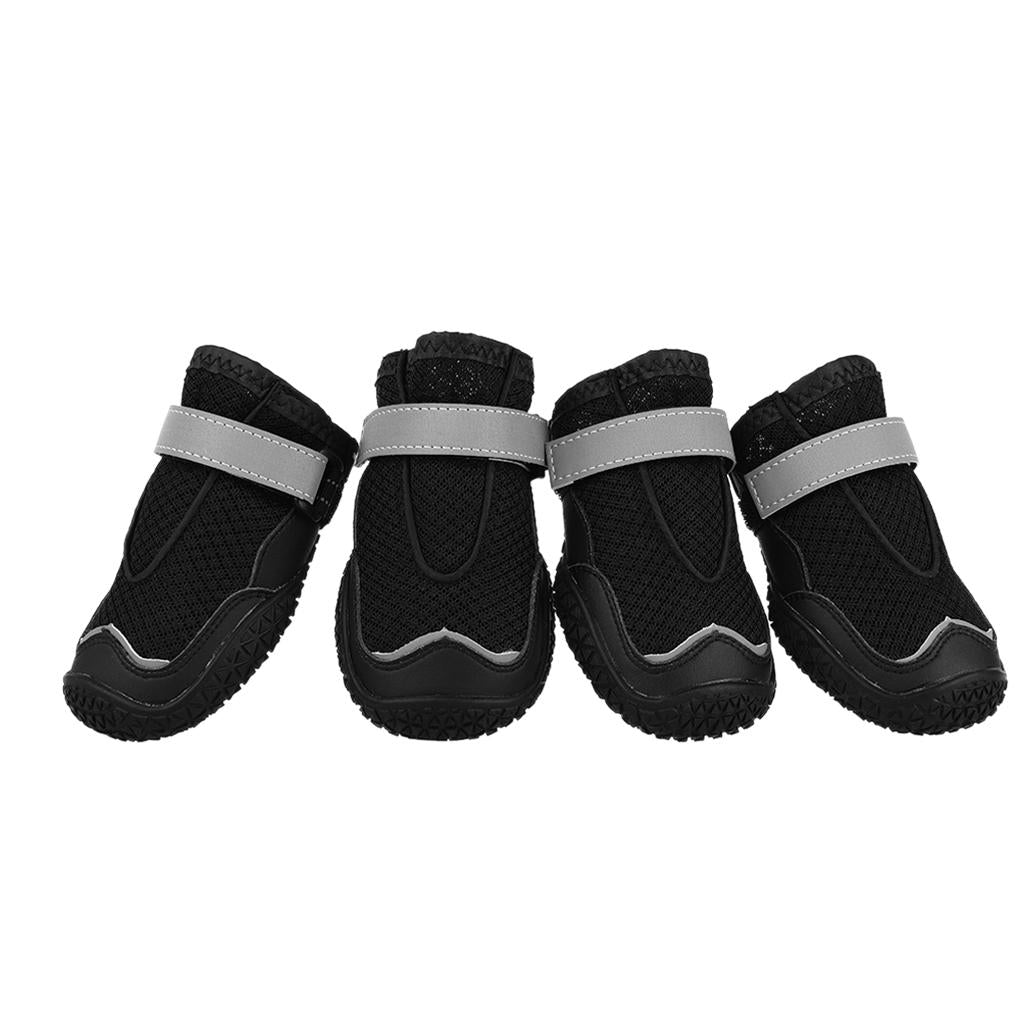 4 Pieces Breathable Hole Skid-proof Dog Shoes Paw Protector Boots Black 6#