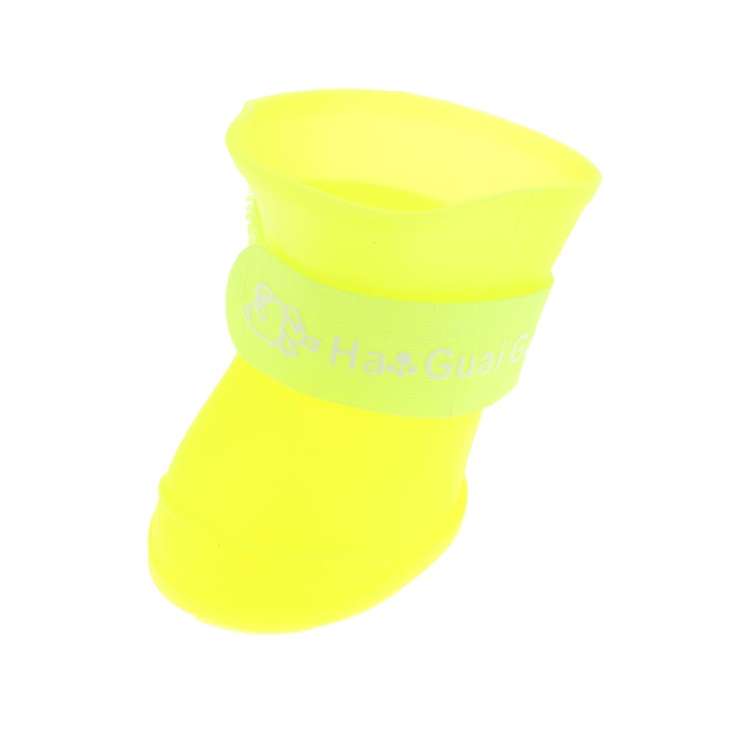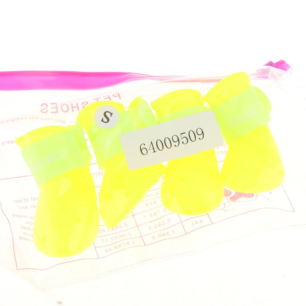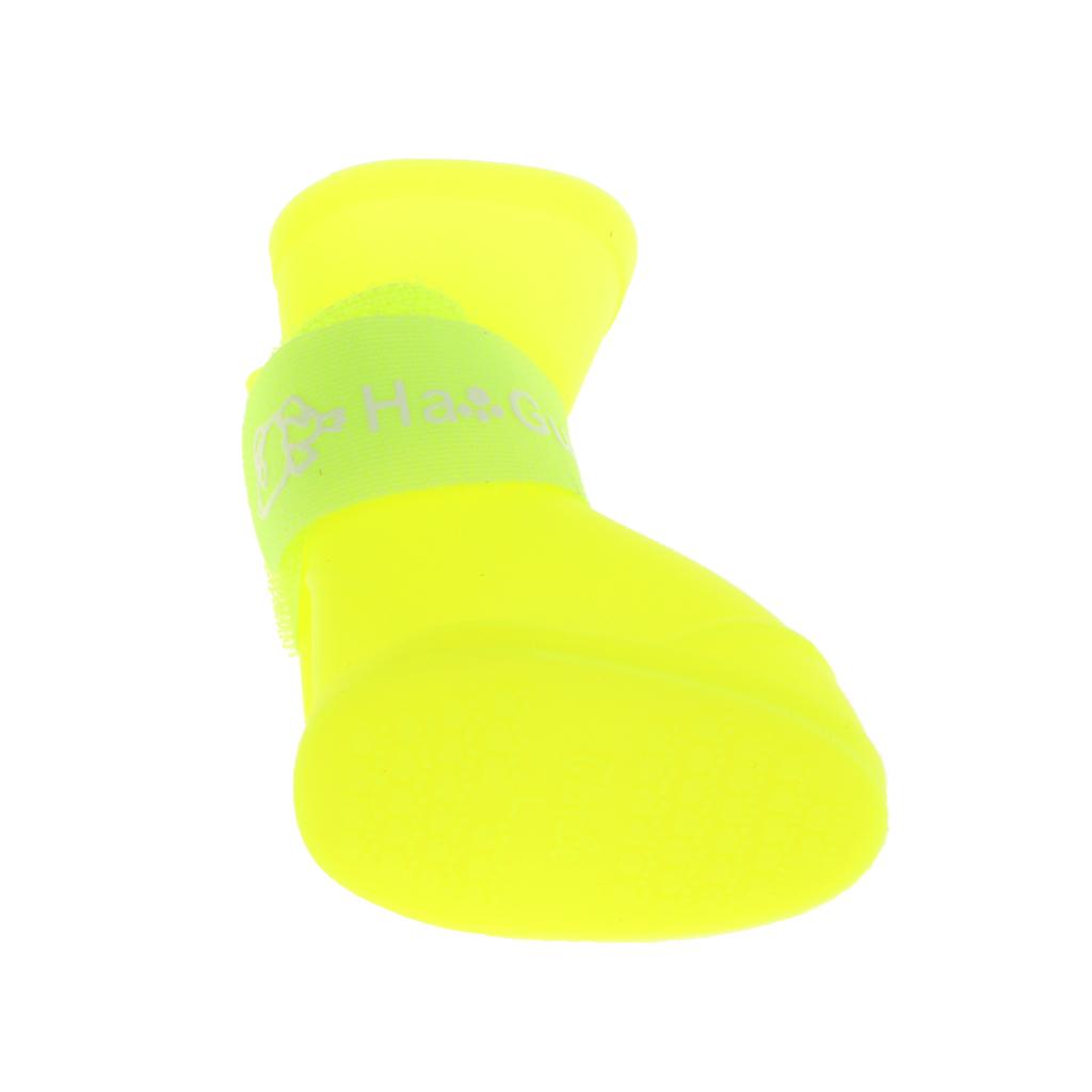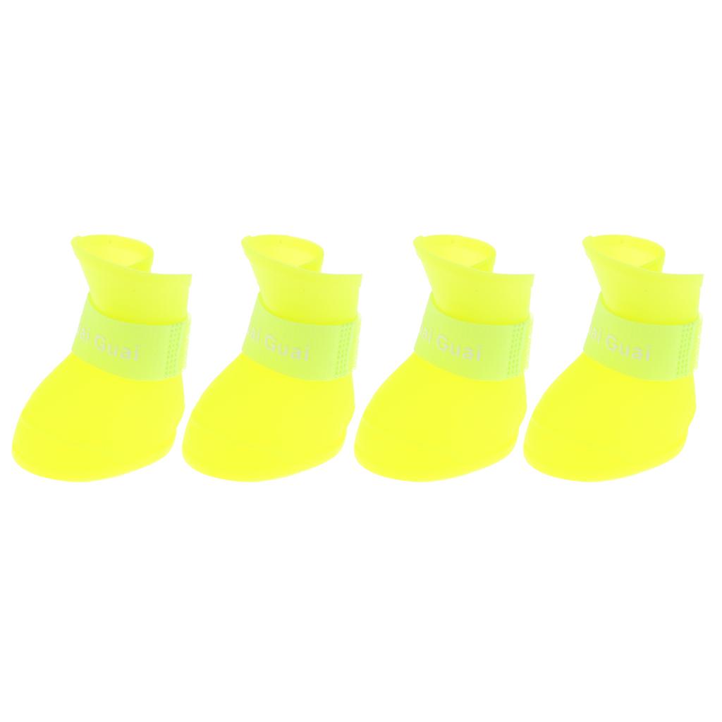 4 Waterproof Dog Puppy Cat Rubber Pet Rain Boots Anti-Slip Shoes Yellow_S