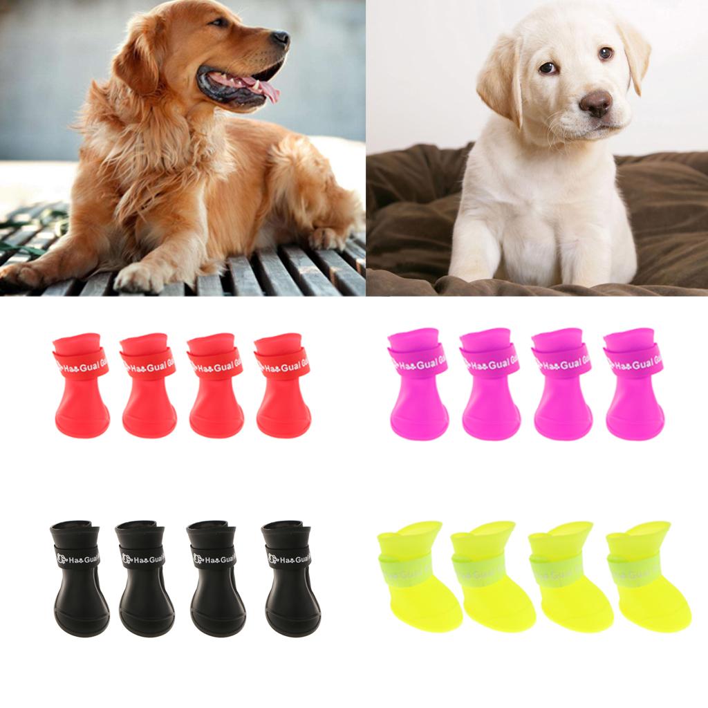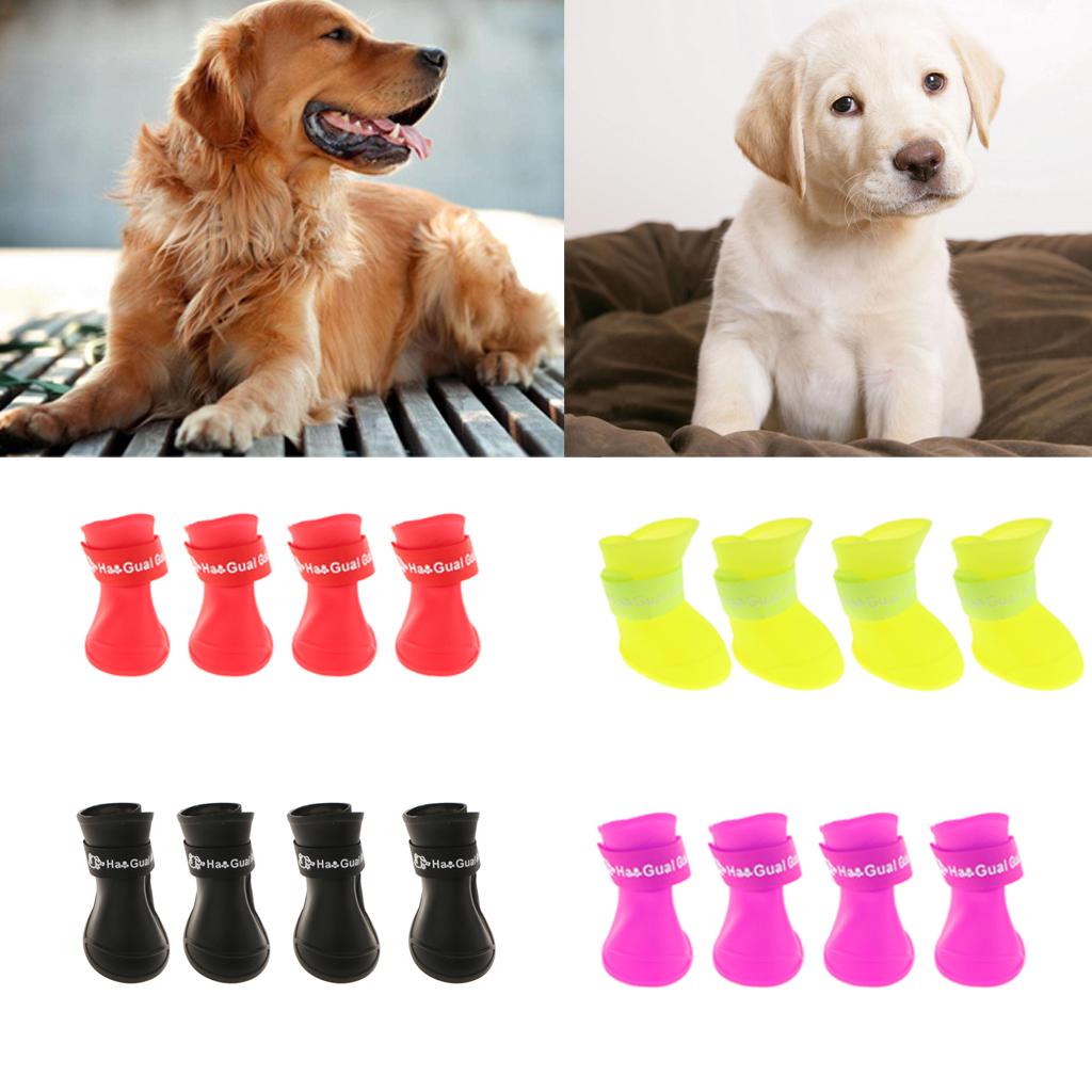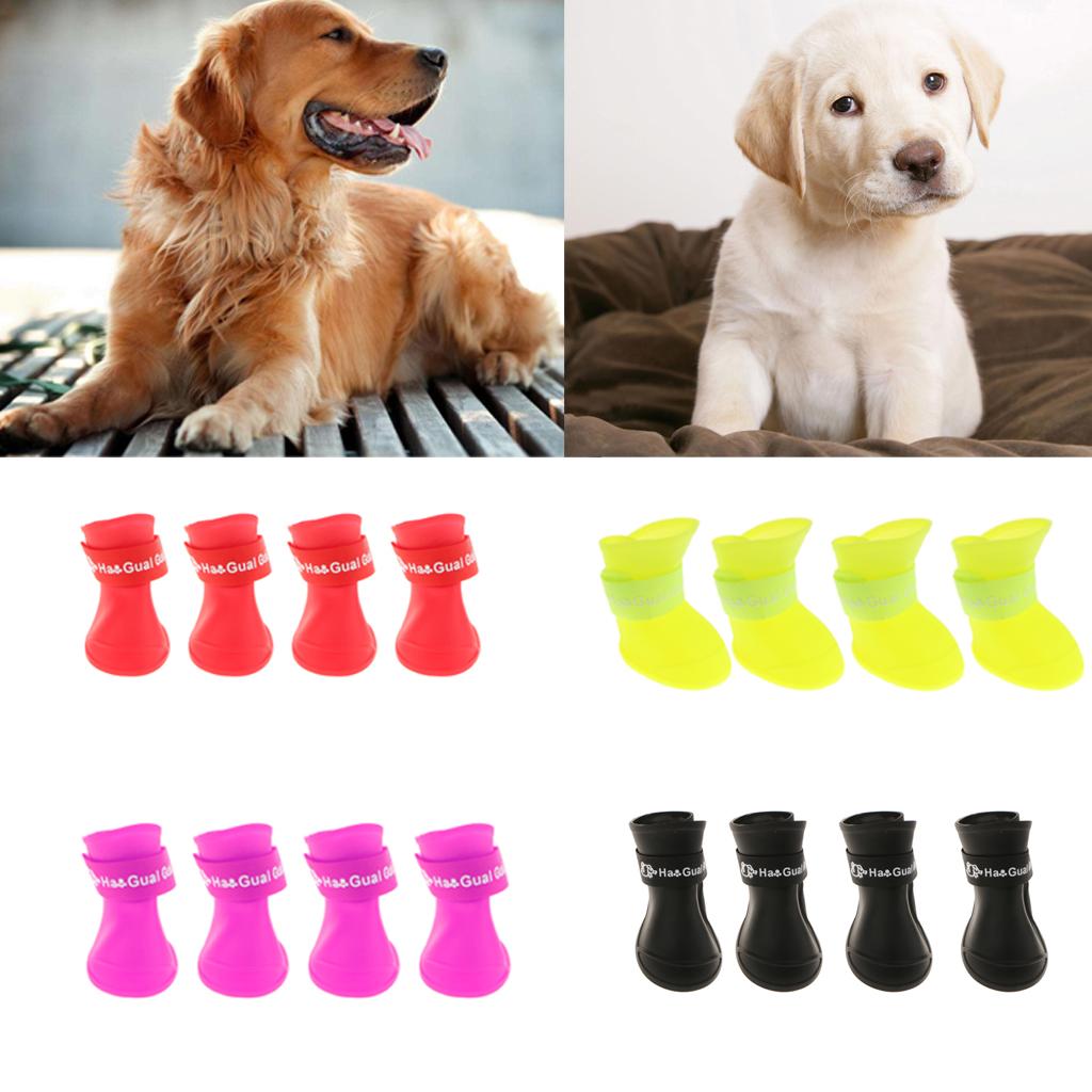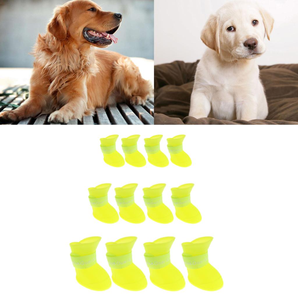 4 Waterproof Dog Puppy Cat Rubber Pet Rain Boots Anti-Slip Shoes Yellow_S
