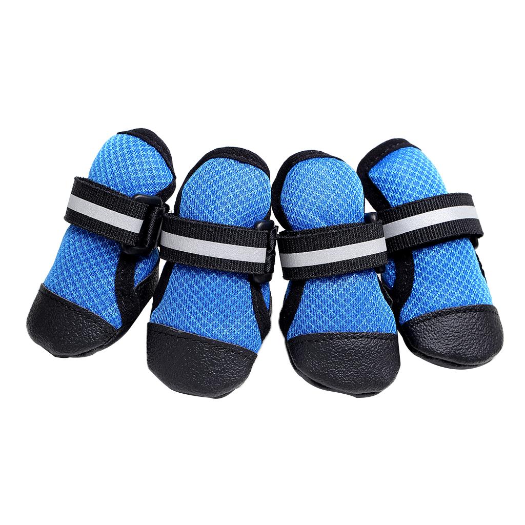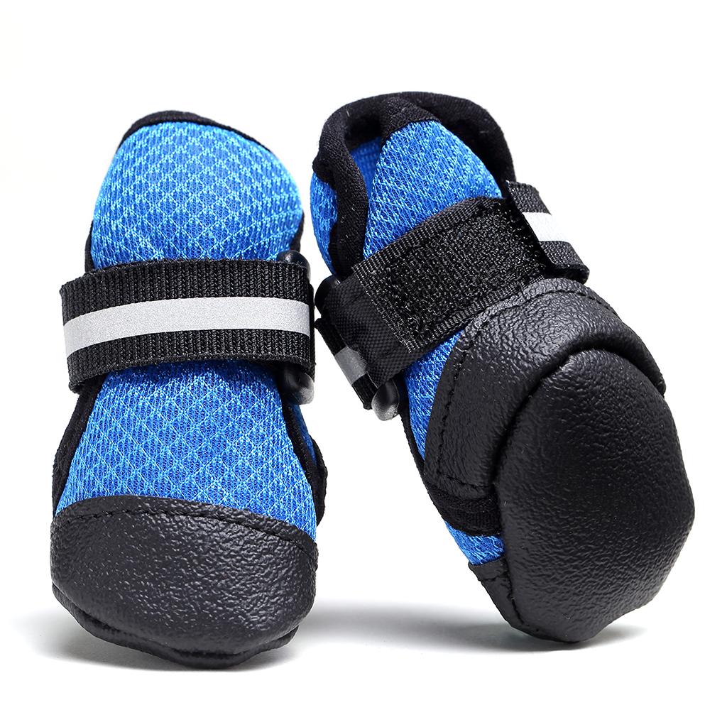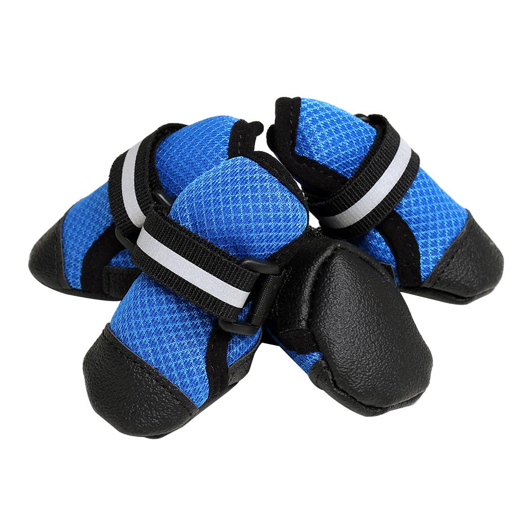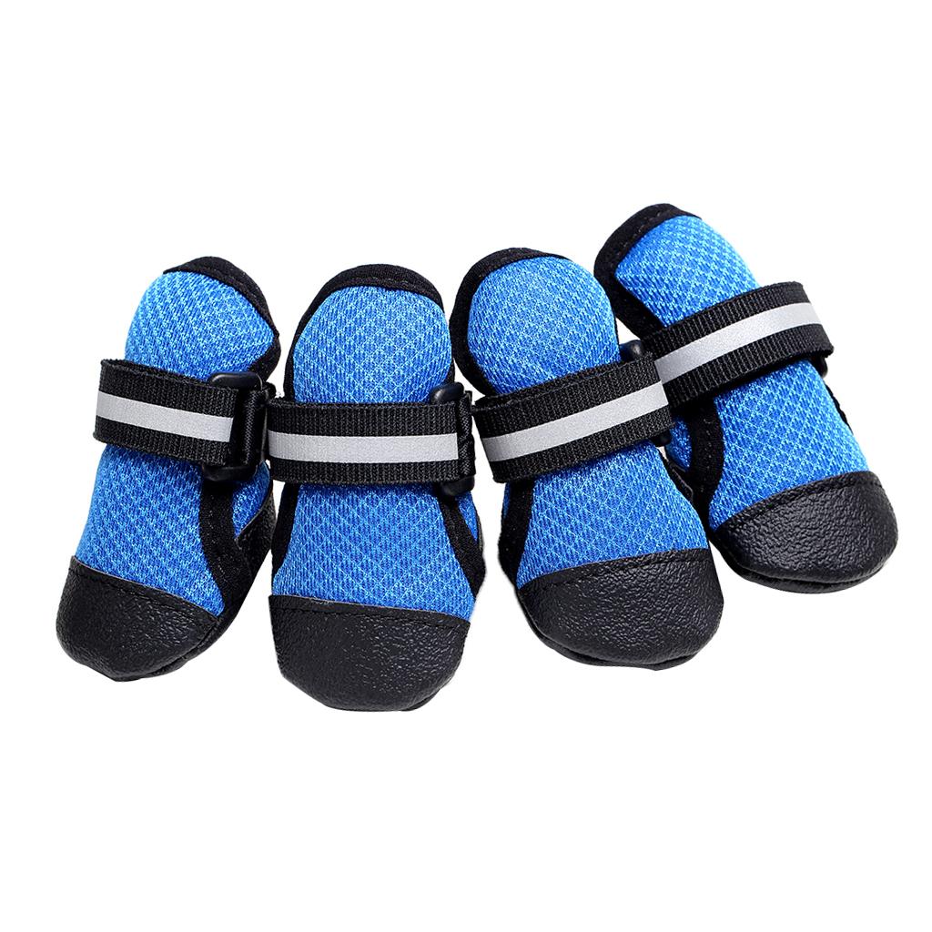4Pcs/pack Pet Dog Reflective Shoes Soft Mesh Non Slip Boots Booties Blue L