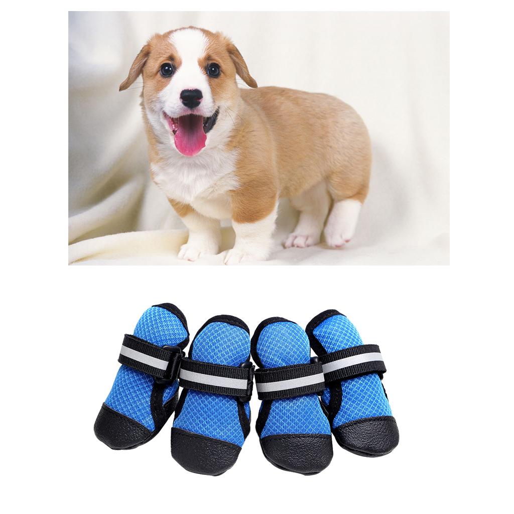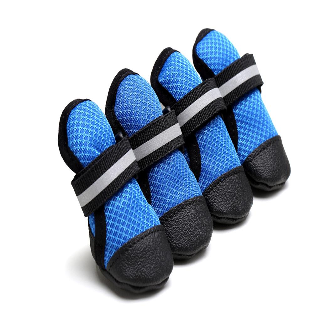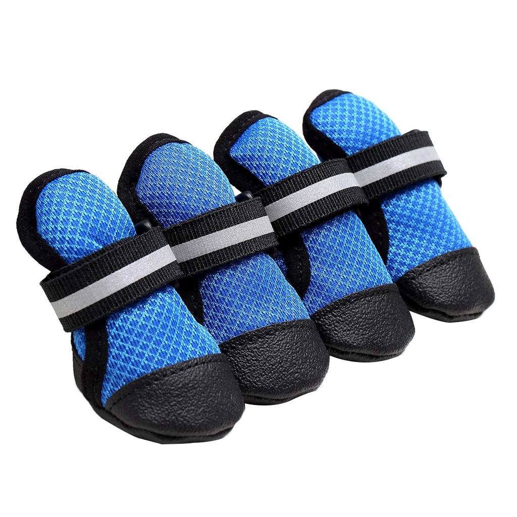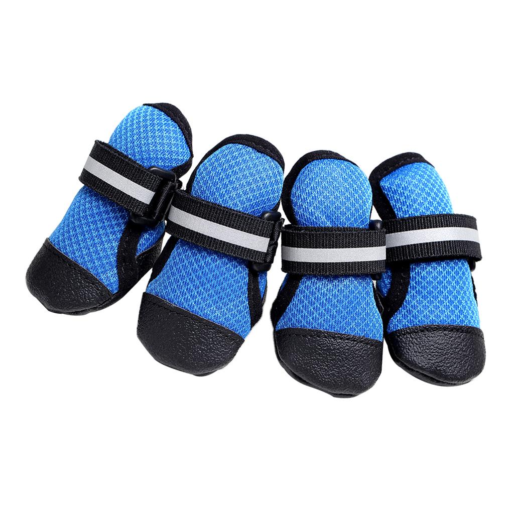 4Pcs/pack Pet Dog Reflective Shoes Soft Mesh Non Slip Boots Booties Blue M