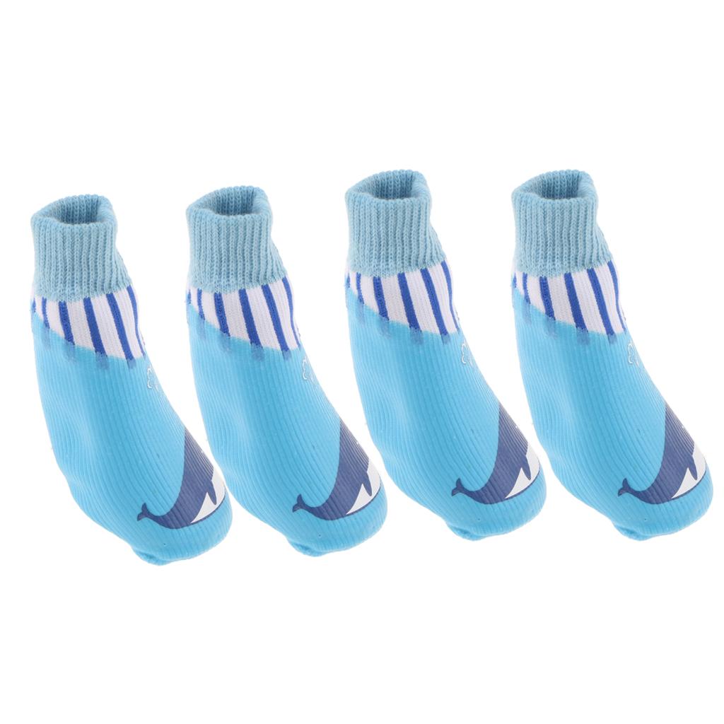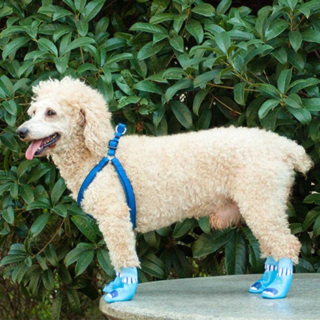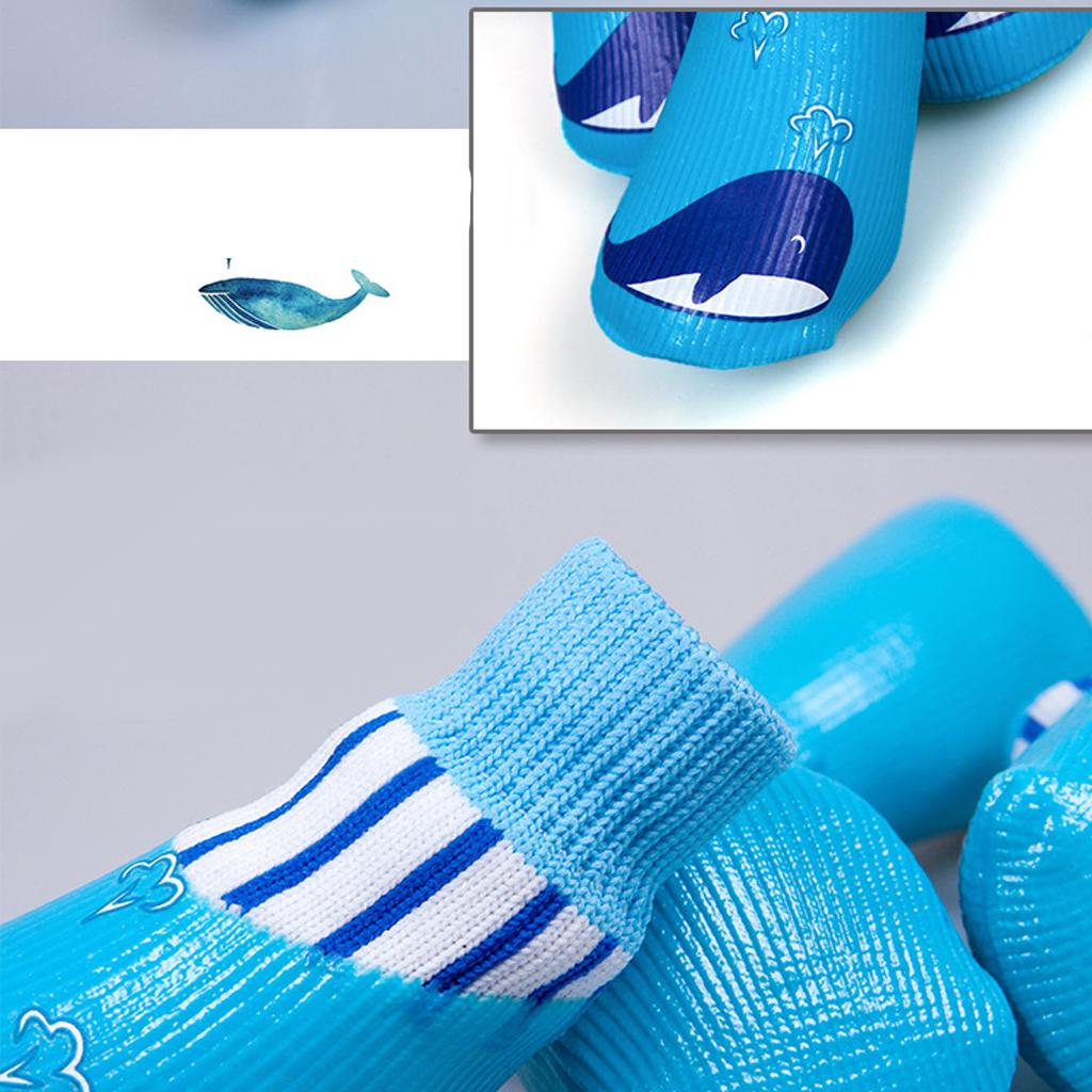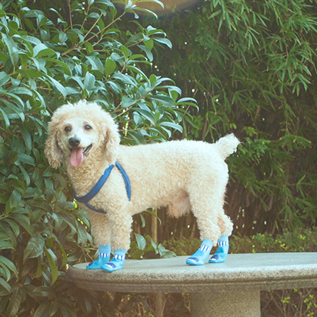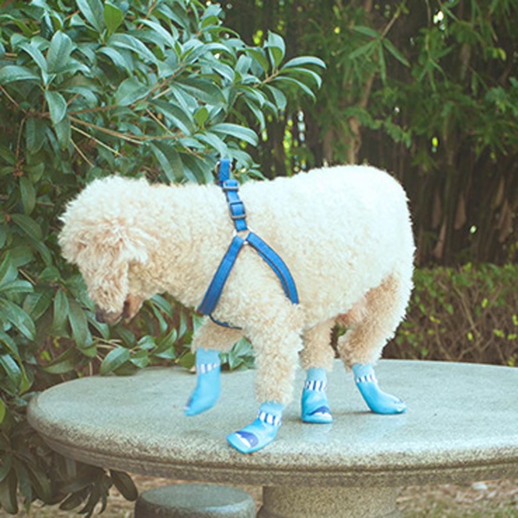 4x Waterproof Pet Dog Socks Puppy Anti-slip Boots Paw Protection Blue - M