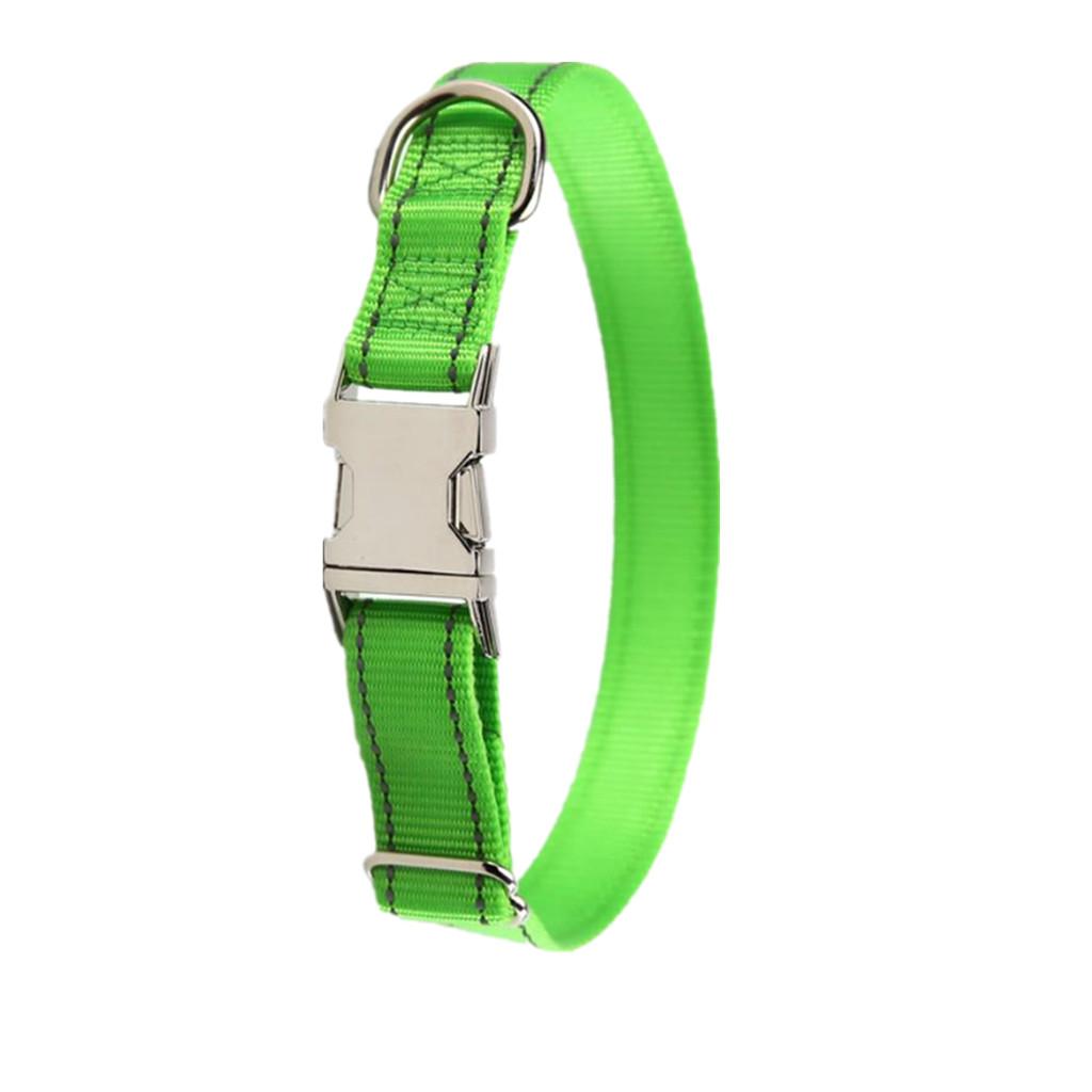Adjustable and Reflective Pet Dog Cat Collar Puppy Neck Buckle Strap M Green