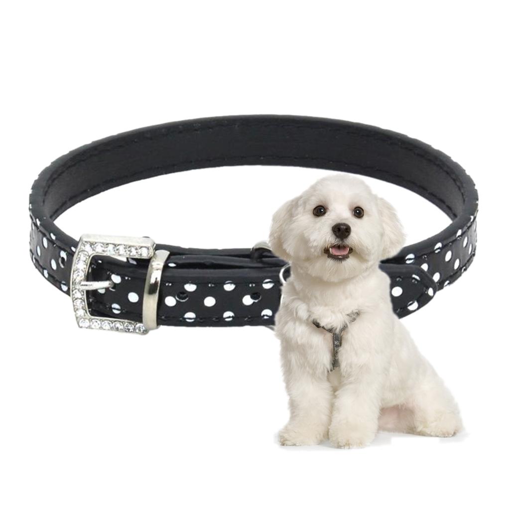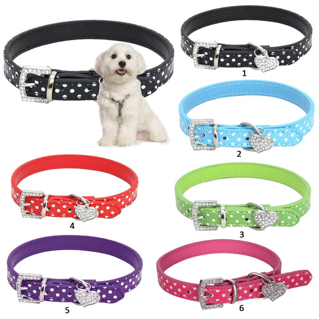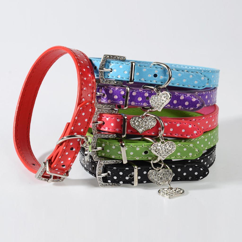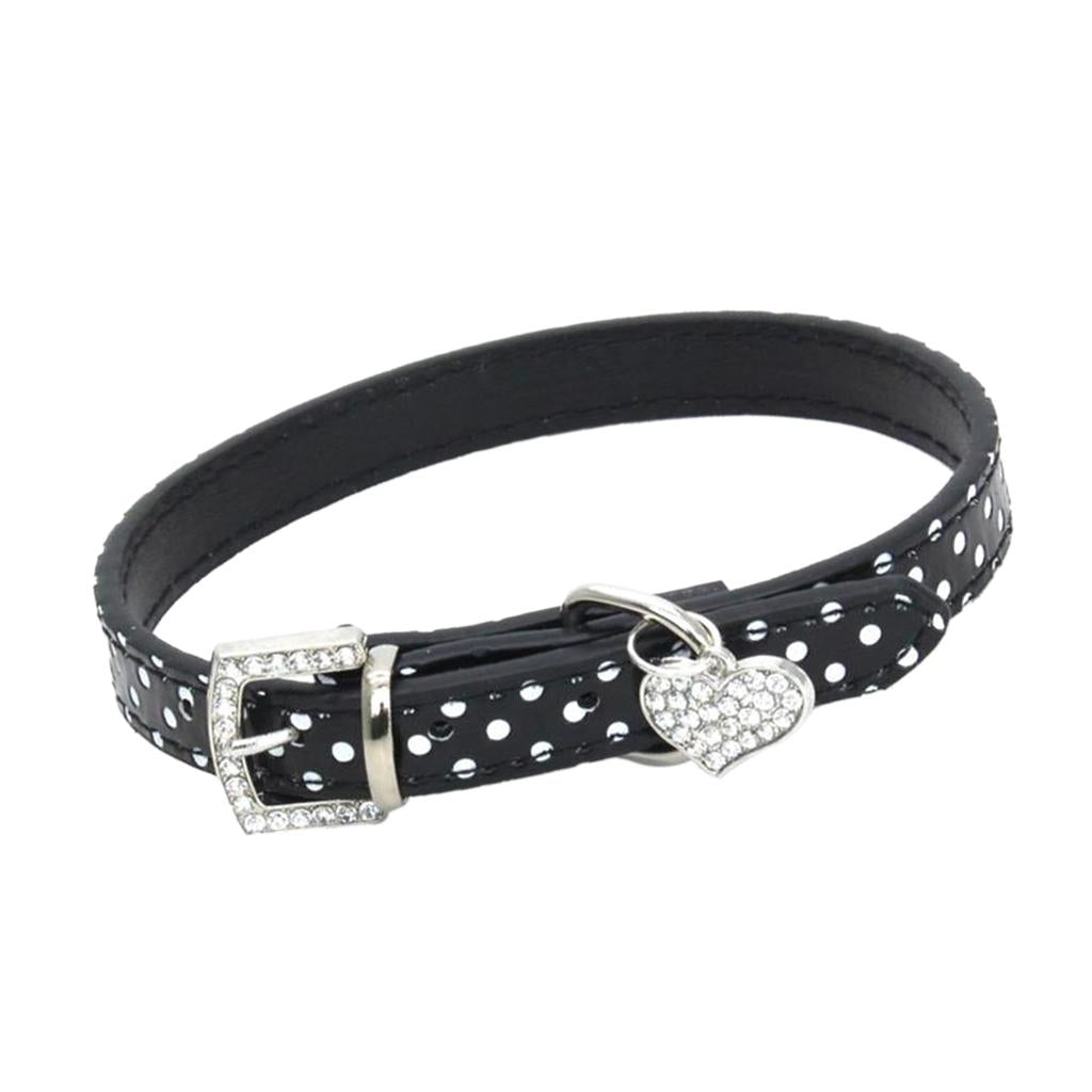 Adjustable Dotted Pet Puppy Dog Collar Heart Pendant Necklace L_Black