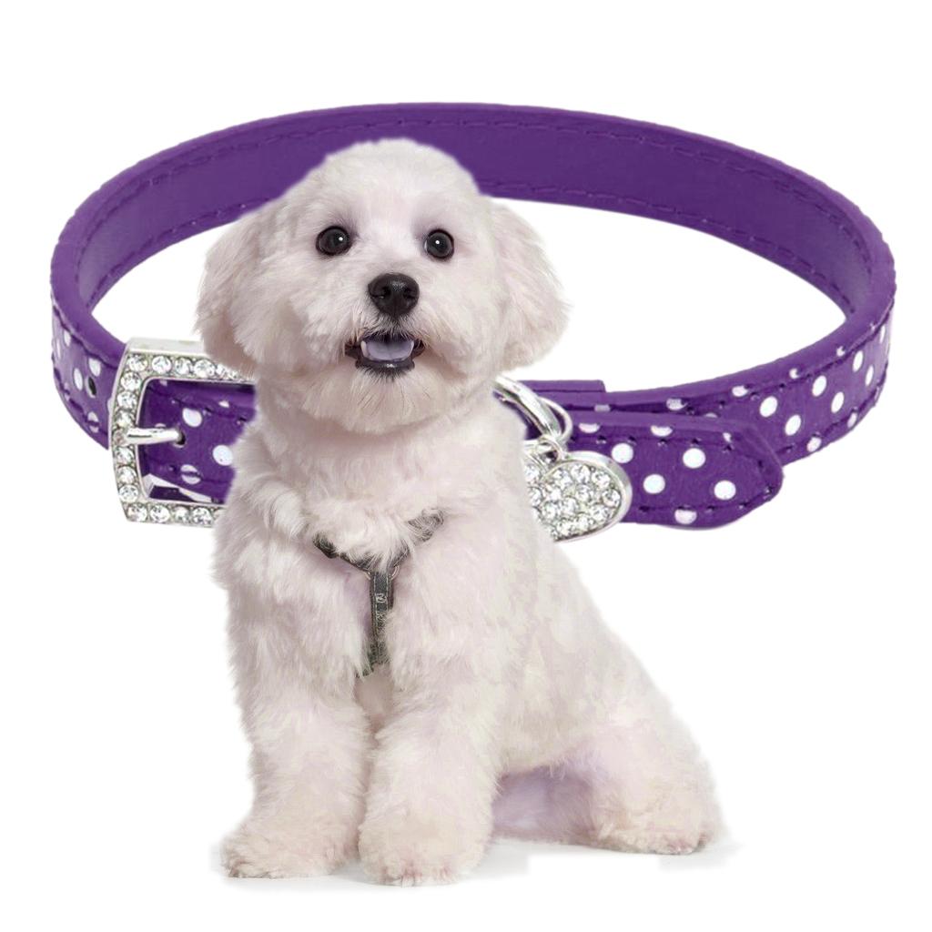 Adjustable Dotted Pet Puppy Dog Collar Heart Pendant Necklace S_Purple