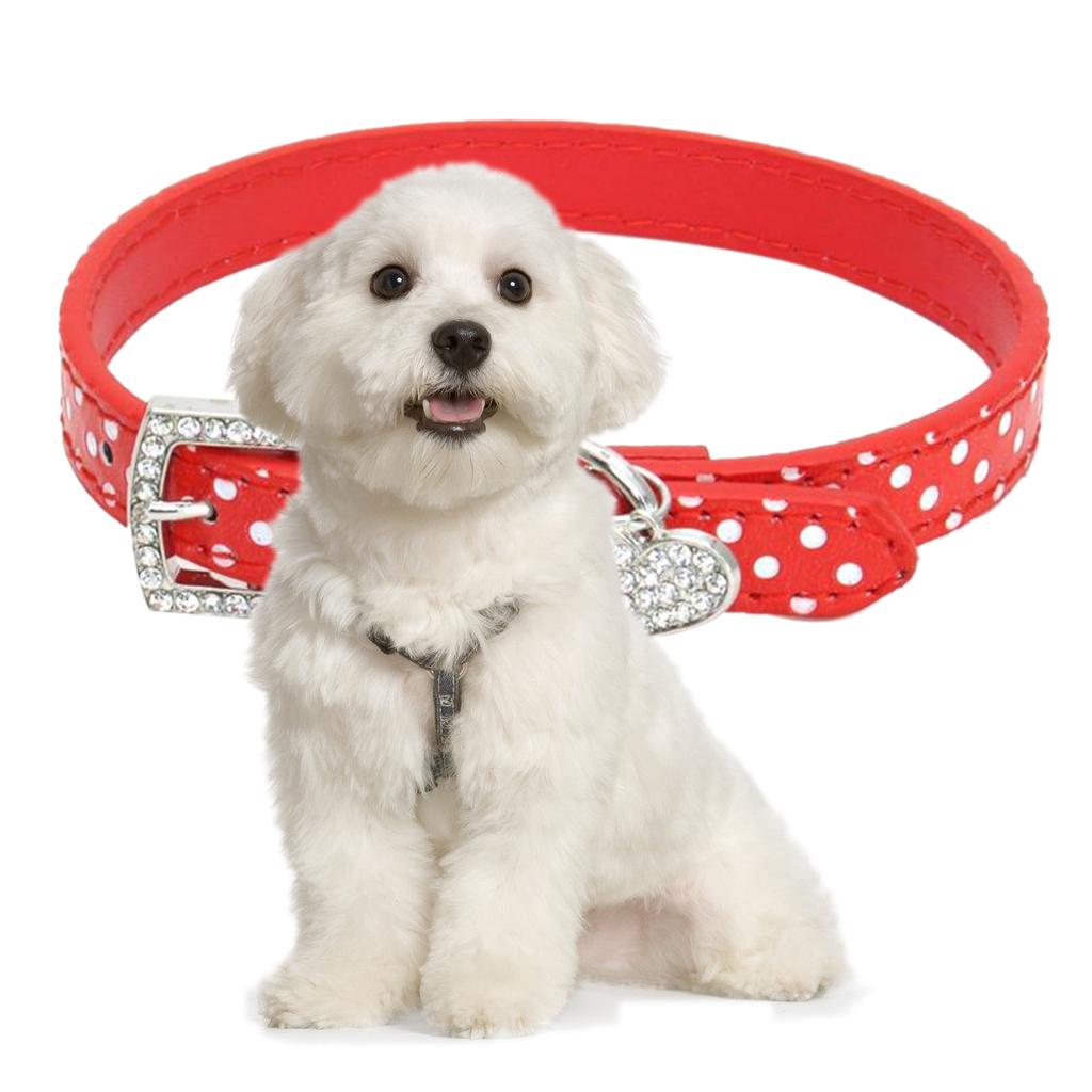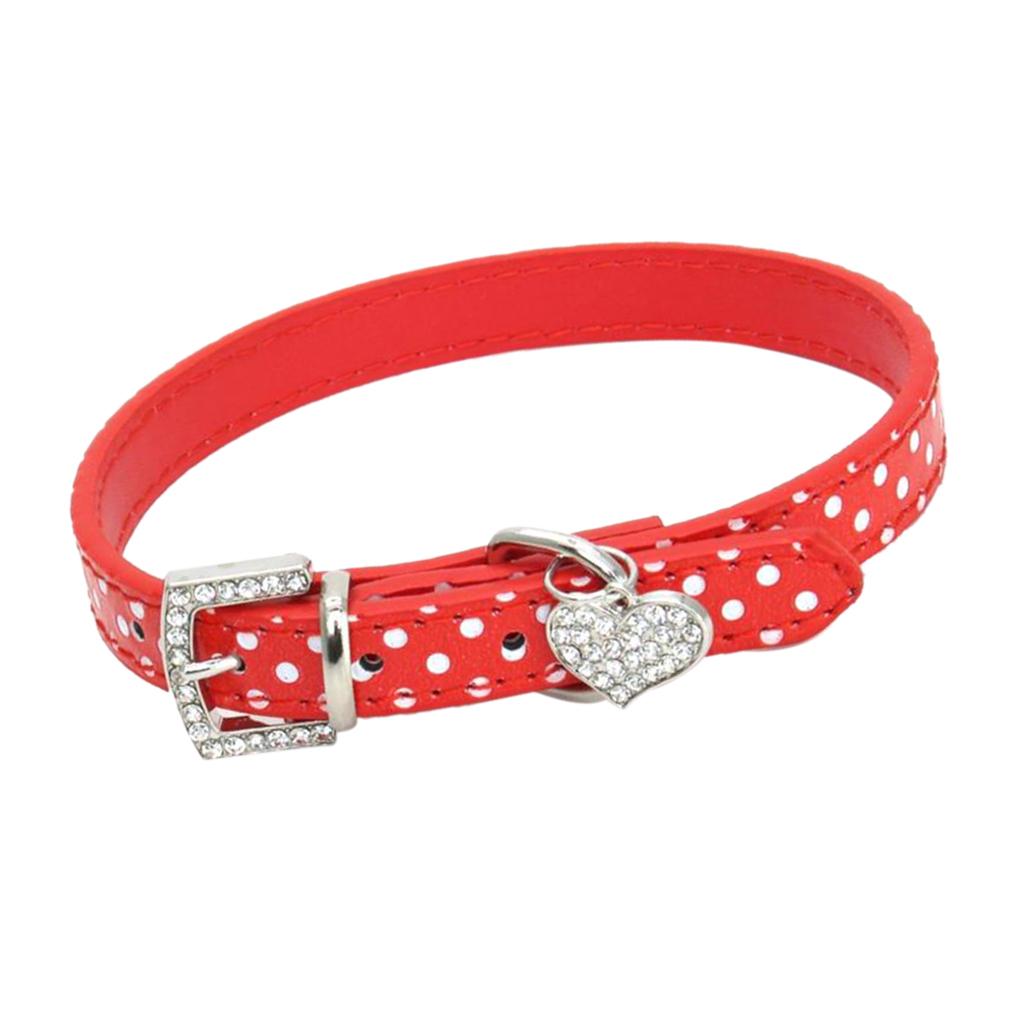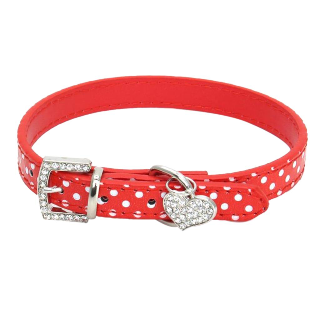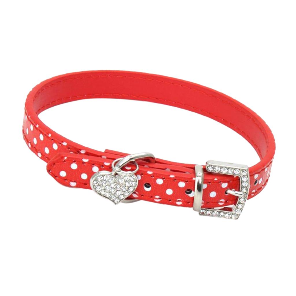 Adjustable Dotted Pet Puppy Dog Collar Heart Pendant Necklace S_Red