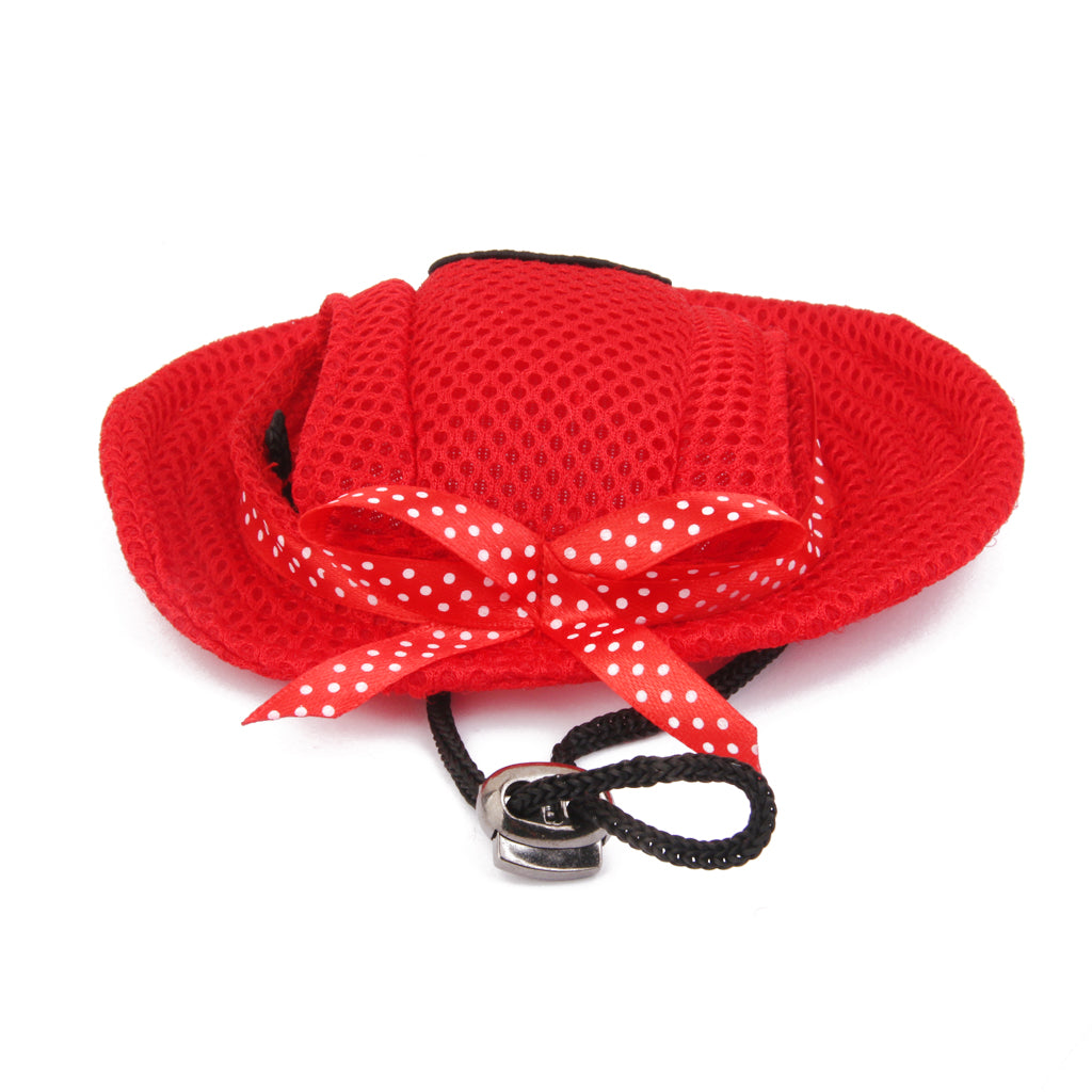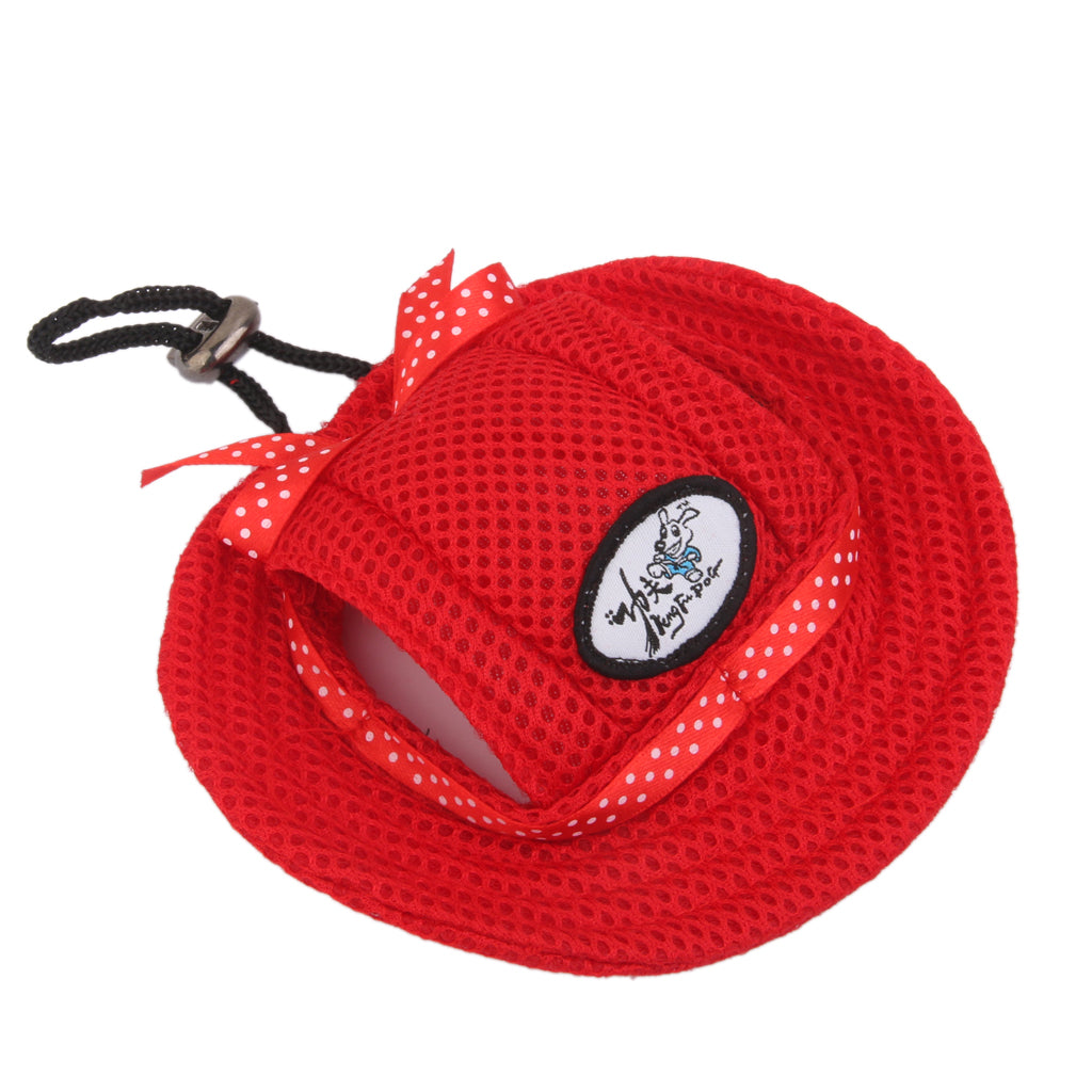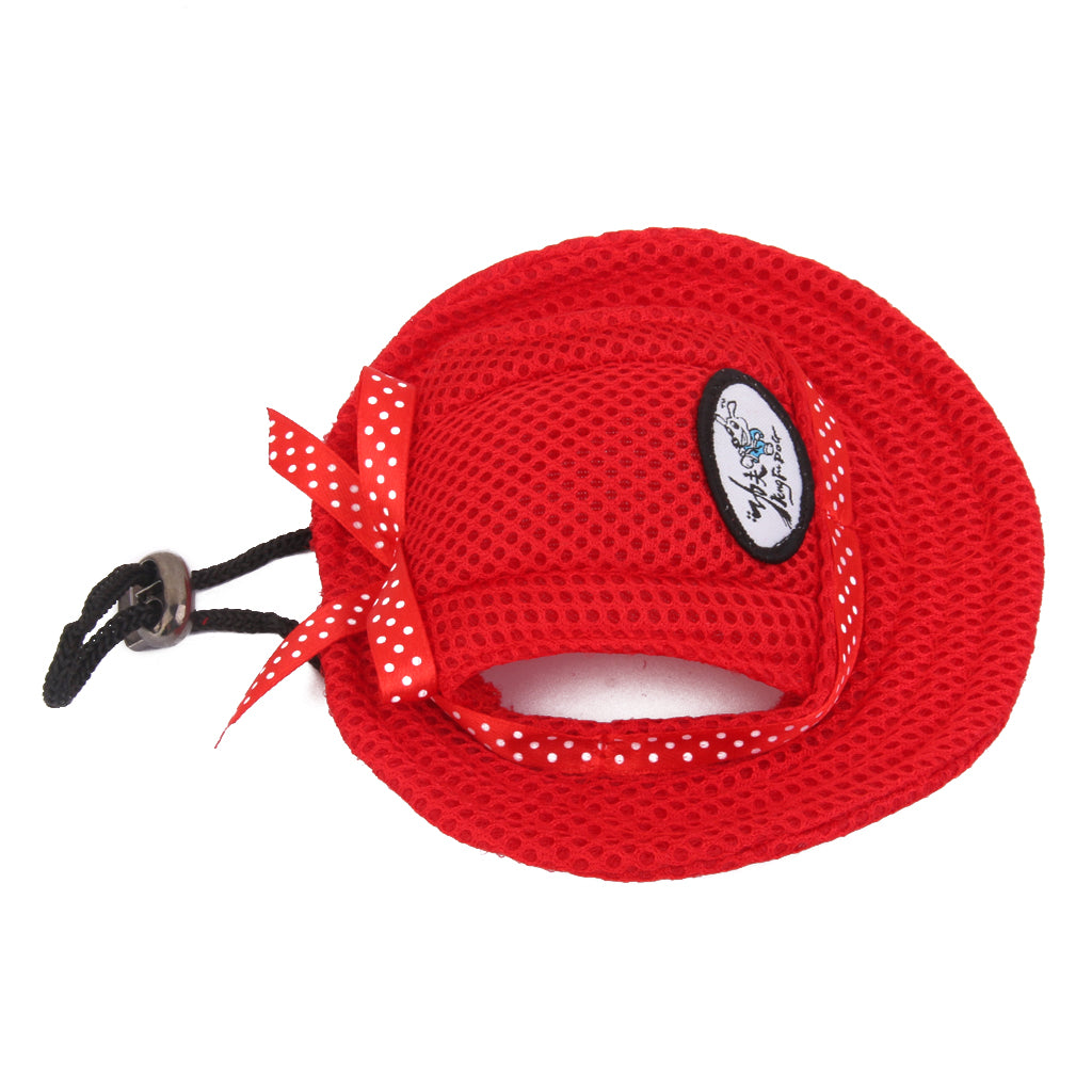 Adjustable Neck Chin Strap Mesh Polyester Dog Hat Pet Supplies Red S