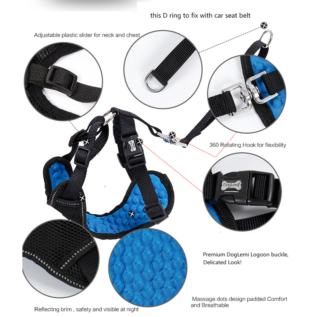 It is not only a dog seat belt harness in car, but also can be served as a walking harness with a lead leash when out of car.