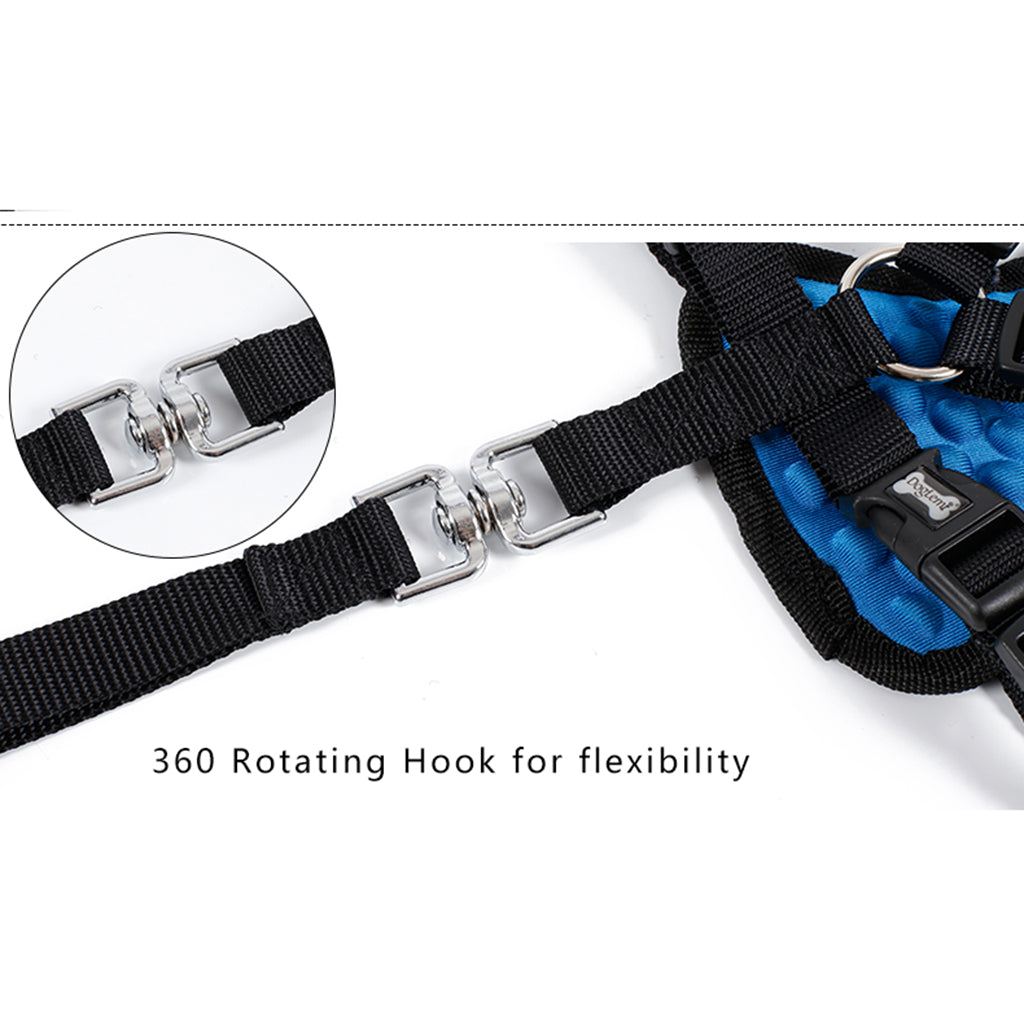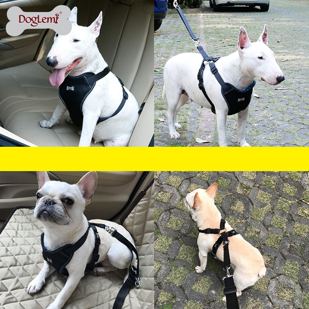 It is not only a dog seat belt harness in car, but also can be served as a walking harness with a lead leash when out of car.