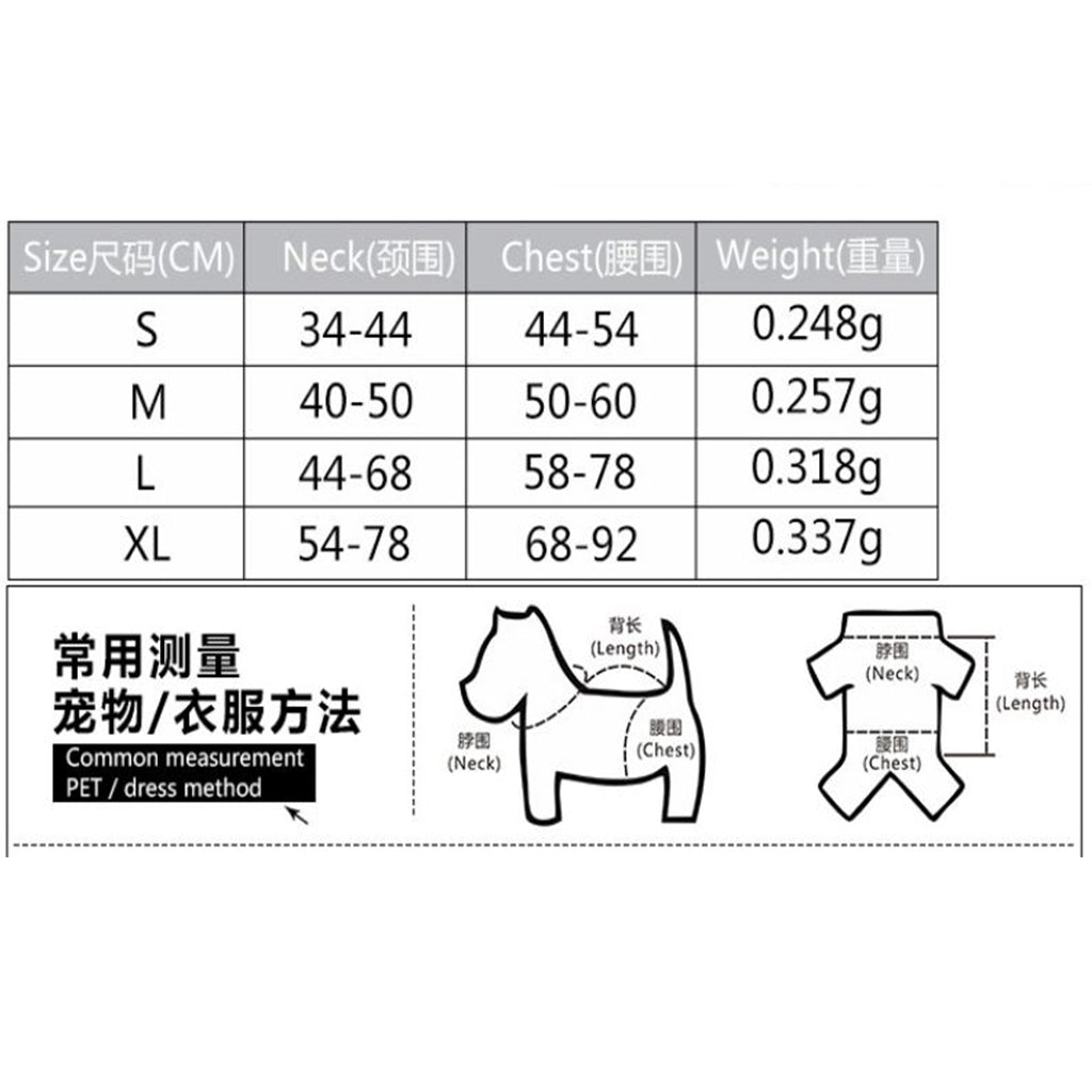 Size S: Neck: 34-44cm/13.39x17.32inch; Chest: 44cm-54cm/17.32x21.26inch