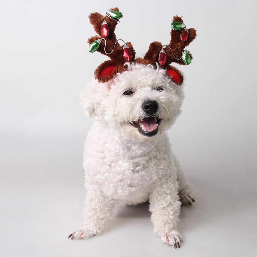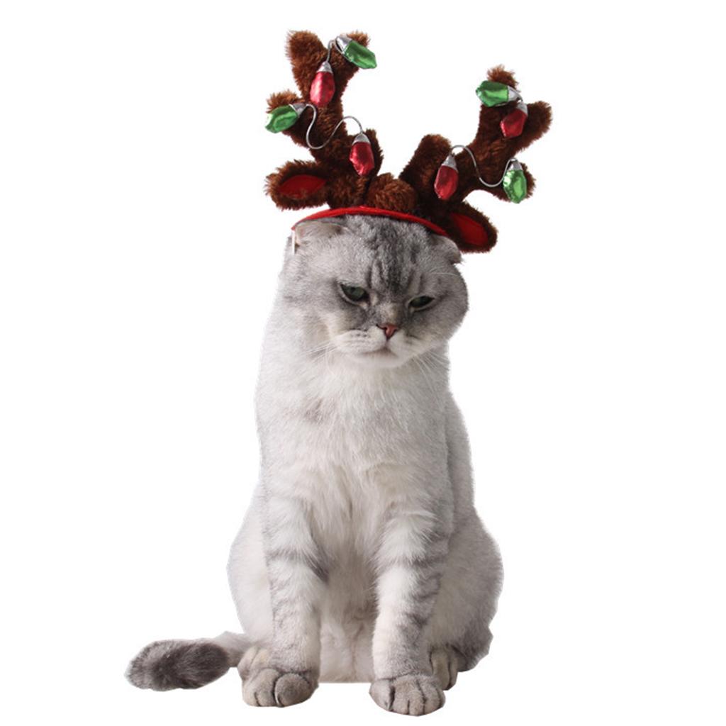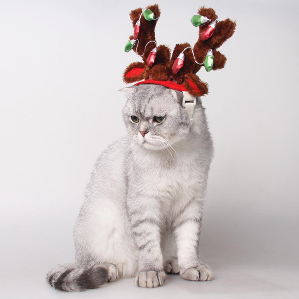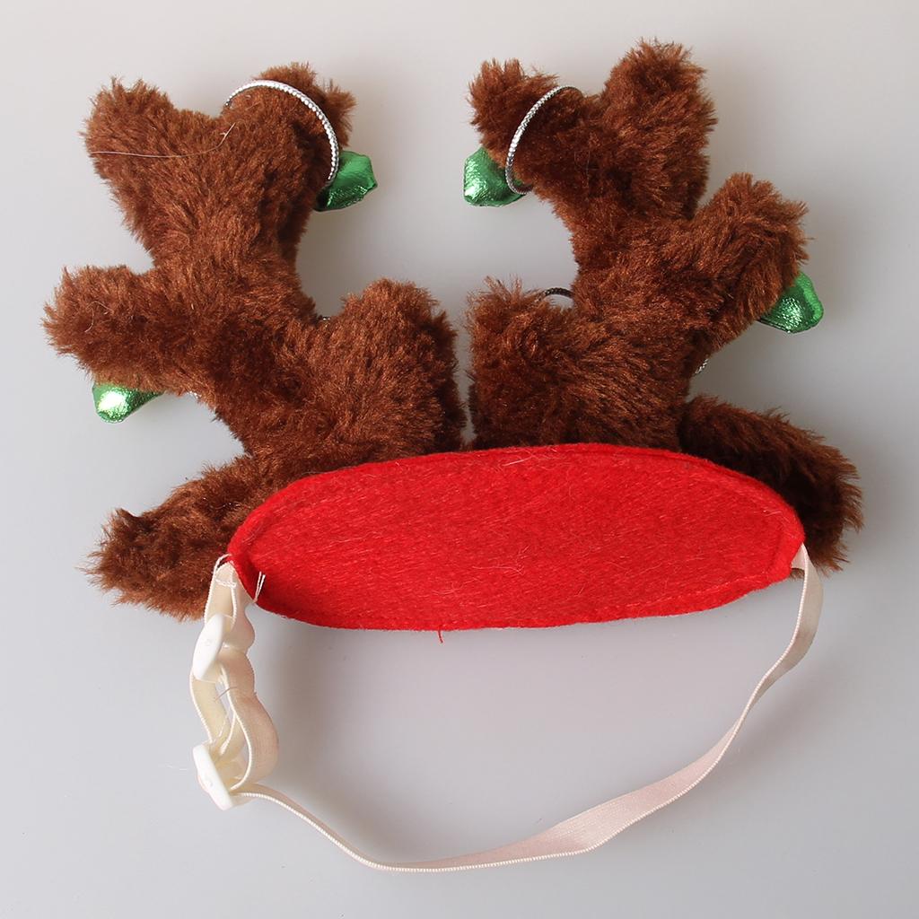 Adjustable flexible pet Christmas hat with reindeer antlers for dogs cats fancy dress.