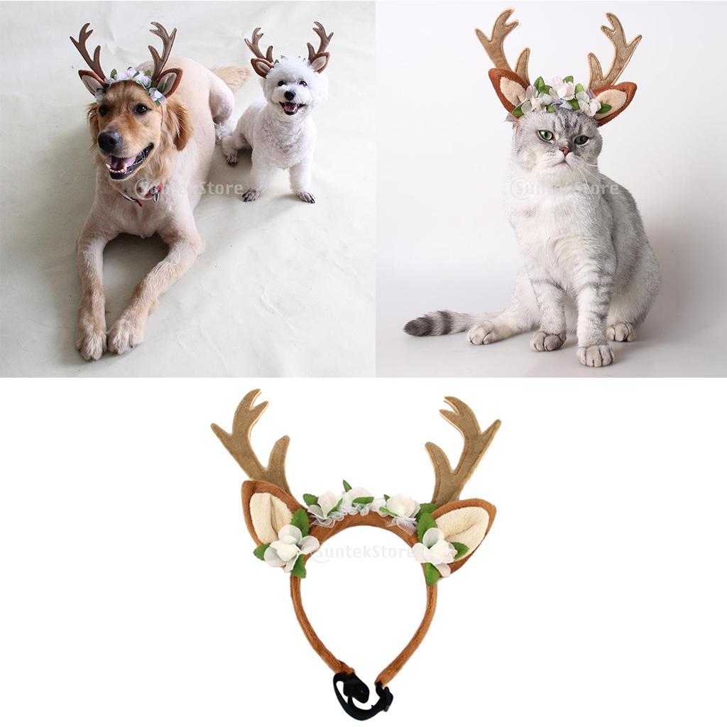 Adjustable Pet Dog Cat Antler Headband Head Hoop with Ears for Christmas M