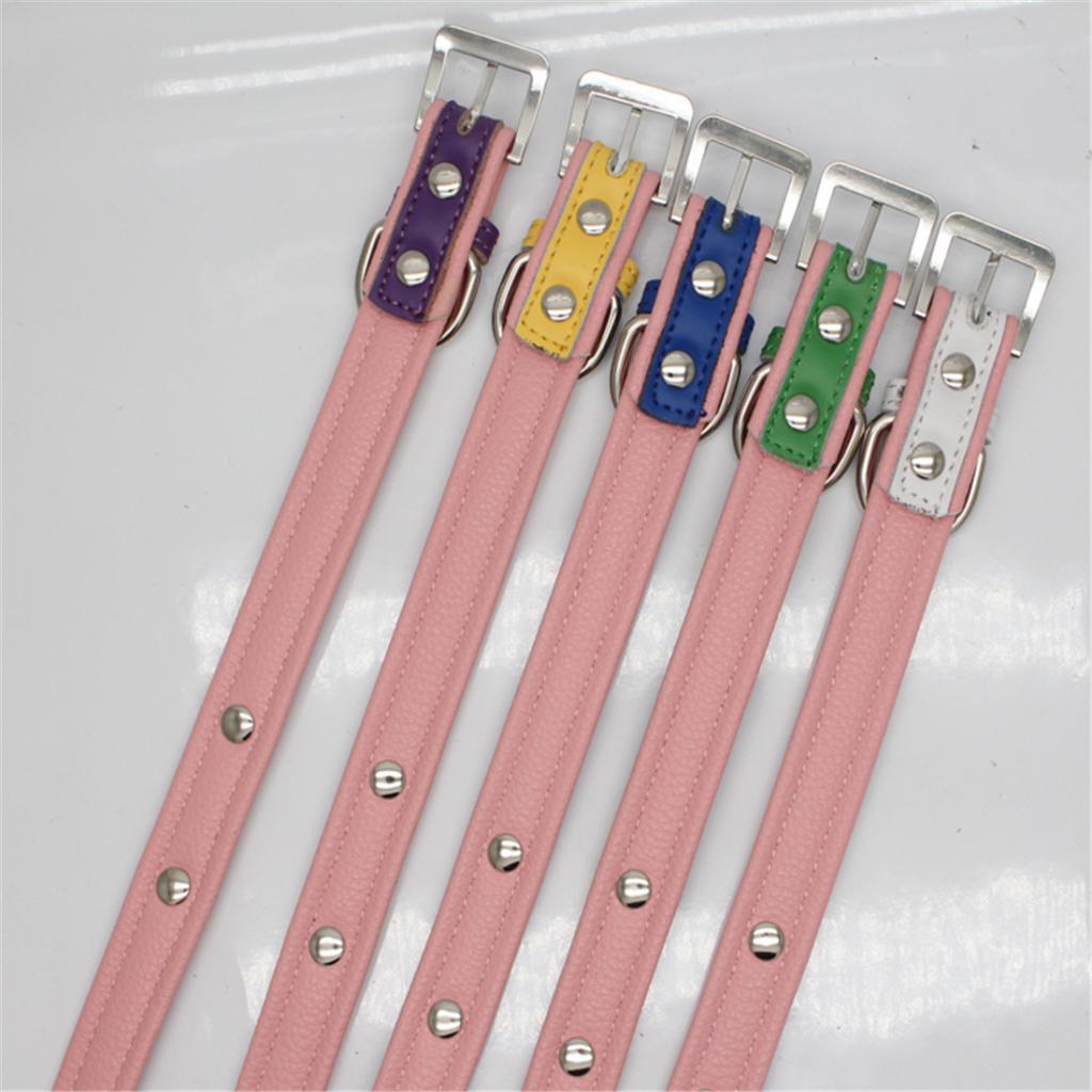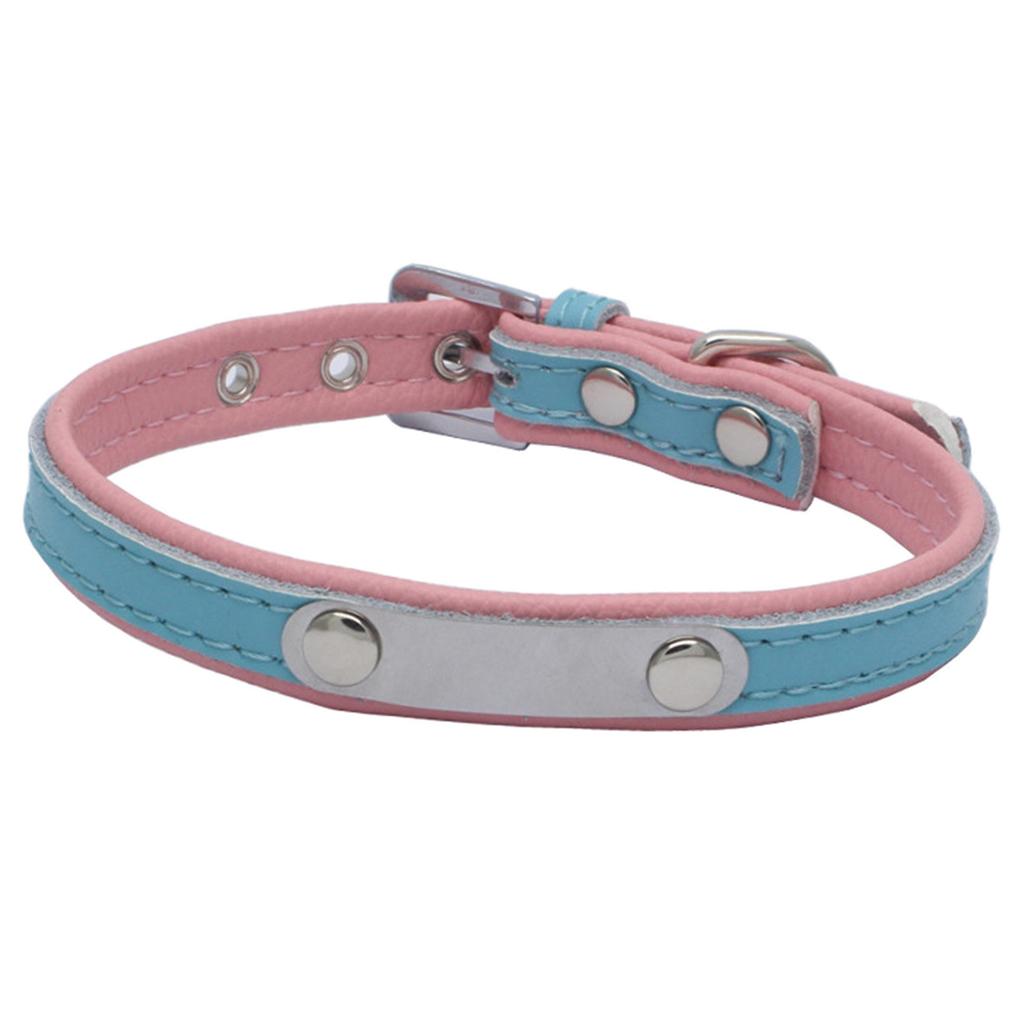 Adjustable PU Leather Pet Dog Cat Collar Neck Strap L Blue+Pink