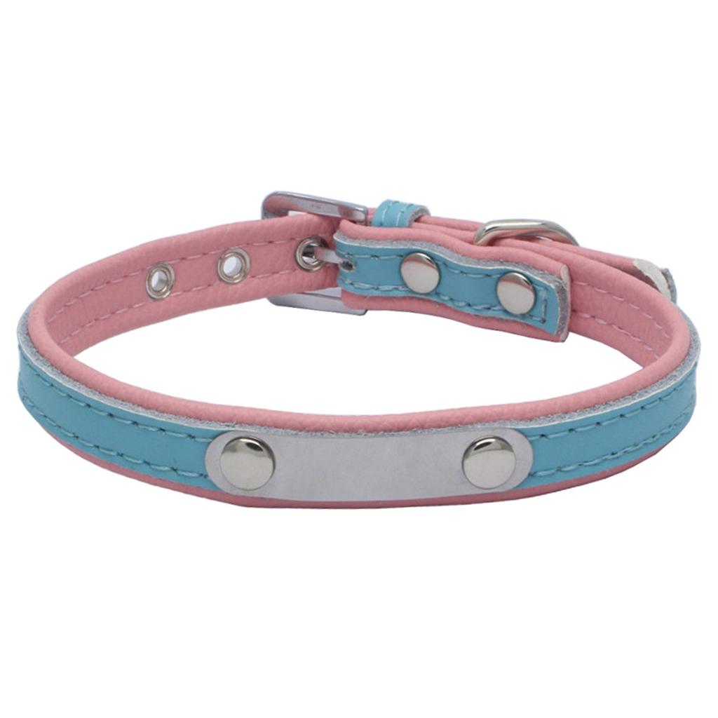 Adjustable PU Leather Pet Dog Cat Collar Neck Strap M Blue+Pink