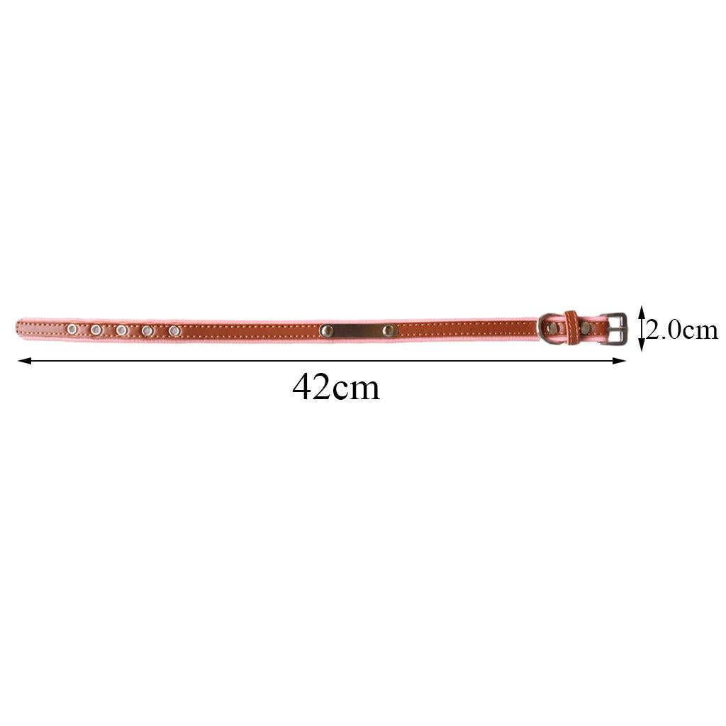 Adjustable PU Leather Pet Dog Cat Collar Neck Strap M Brown+Pink