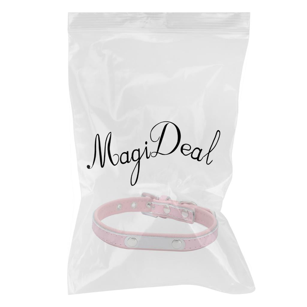 Adjustable PU Leather Pet Dog Cat Collar Neck Strap M Pink