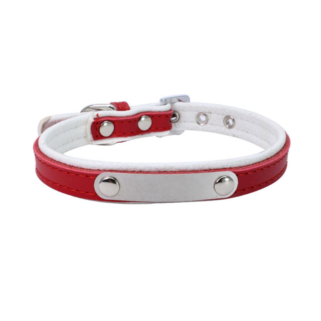Adjustable PU Leather Pet Dog Cat Collar Neck Strap M Red+White