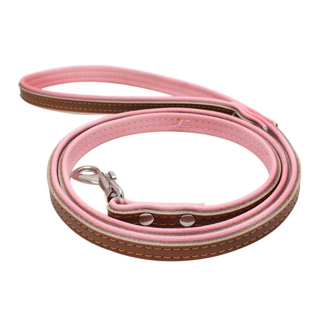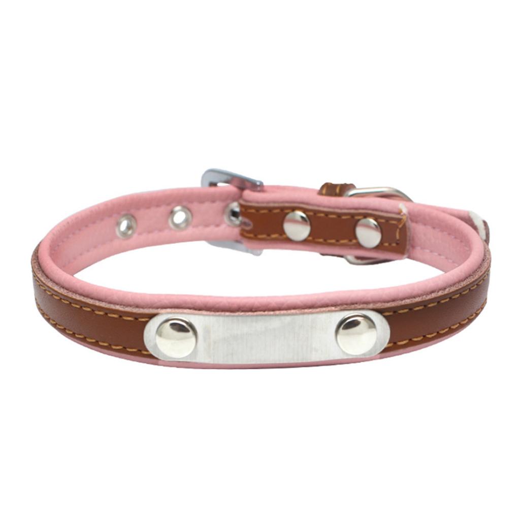 Adjustable PU Leather Pet Dog Cat Collar Neck Strap S Brown+Pink