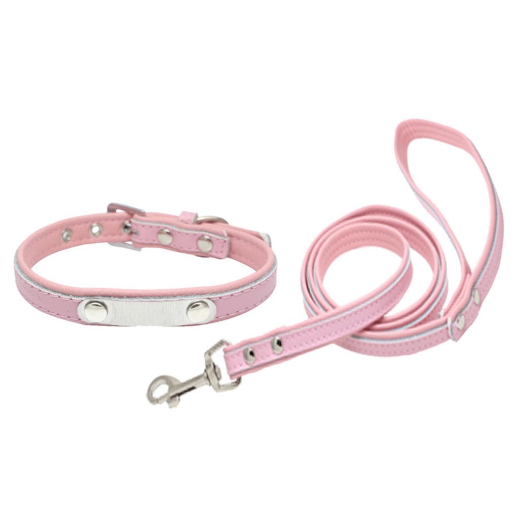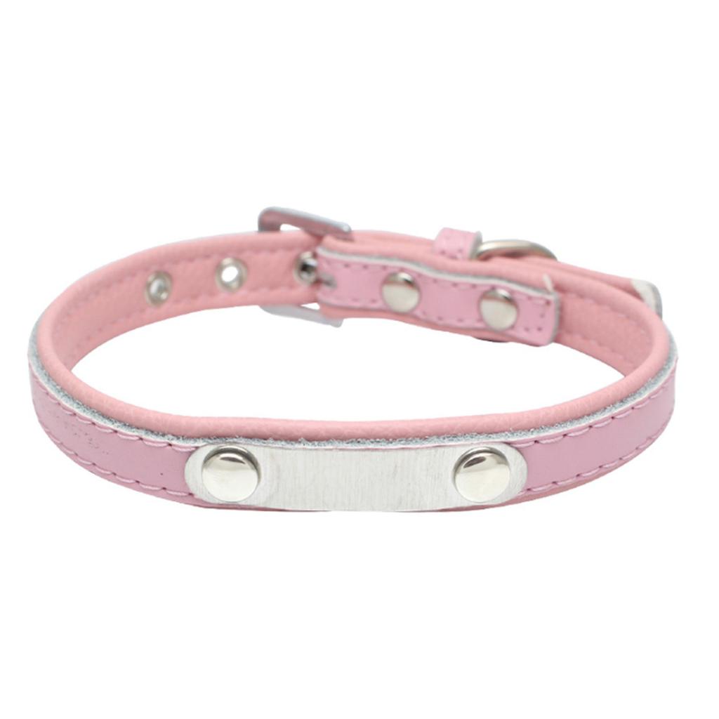 Adjustable PU Leather Pet Dog Cat Collar Neck Strap S Pink