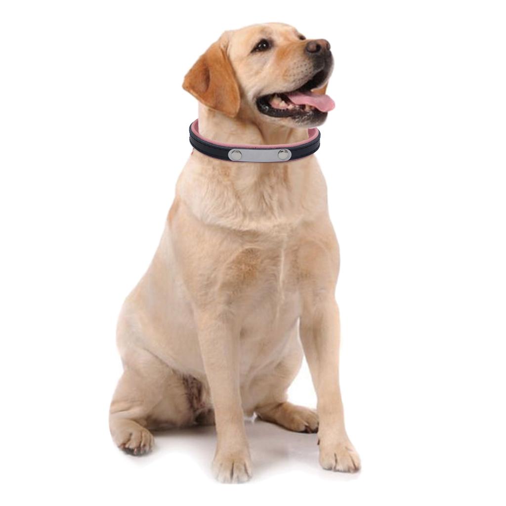 Adjustable PU Leather Pet Dog Cat Collar Neck Strap XL Black+Pink
