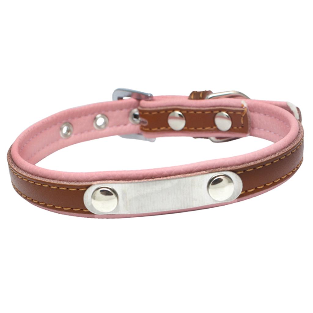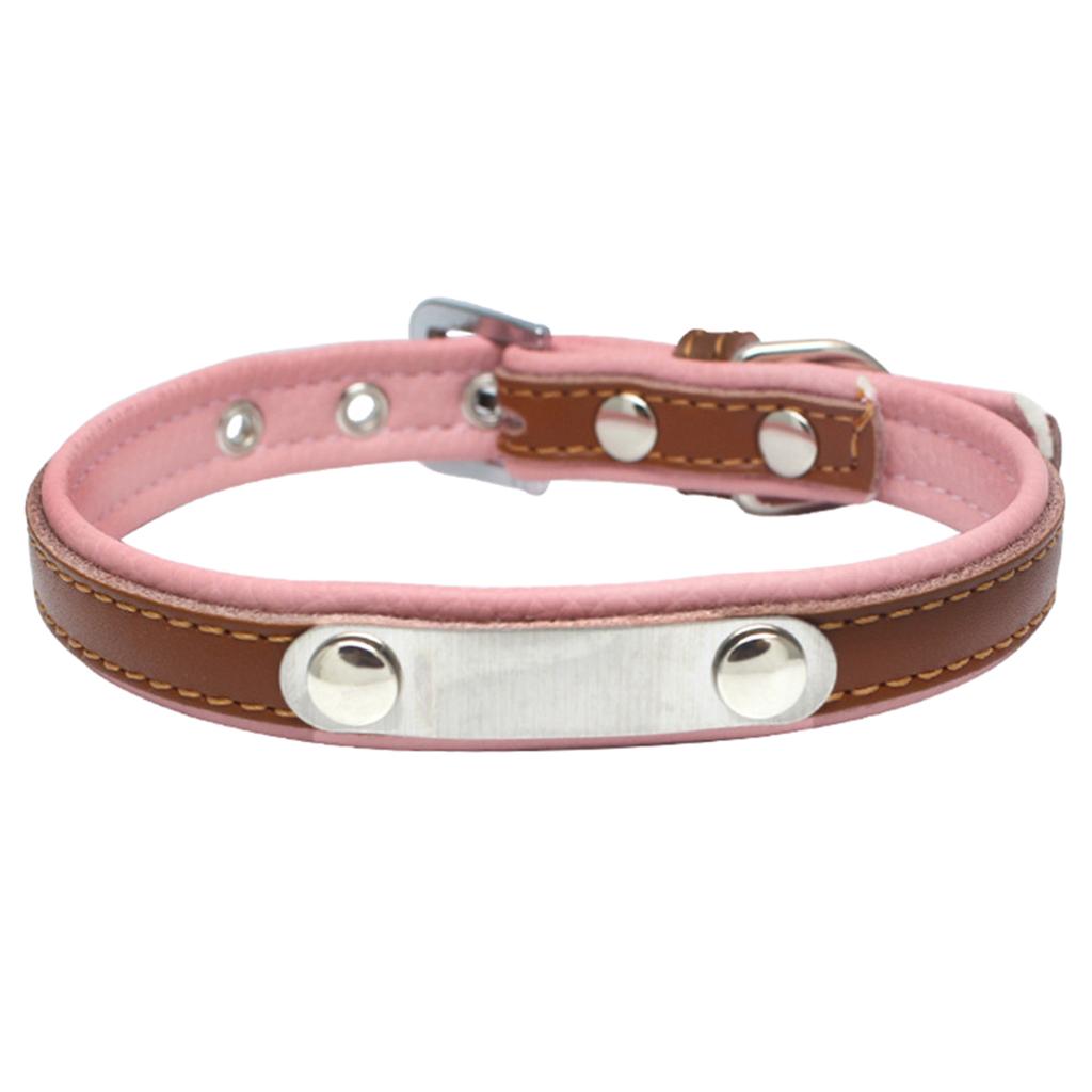 Adjustable PU Leather Pet Dog Cat Collar Neck Strap XL Brown+Pink