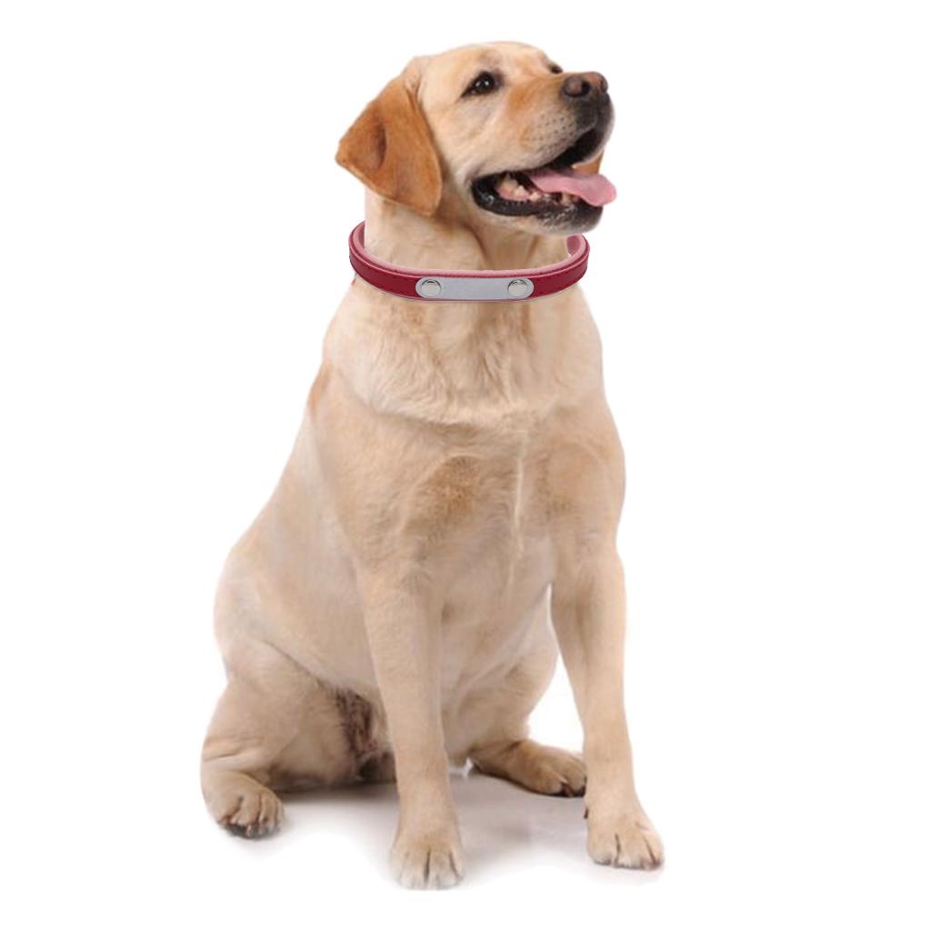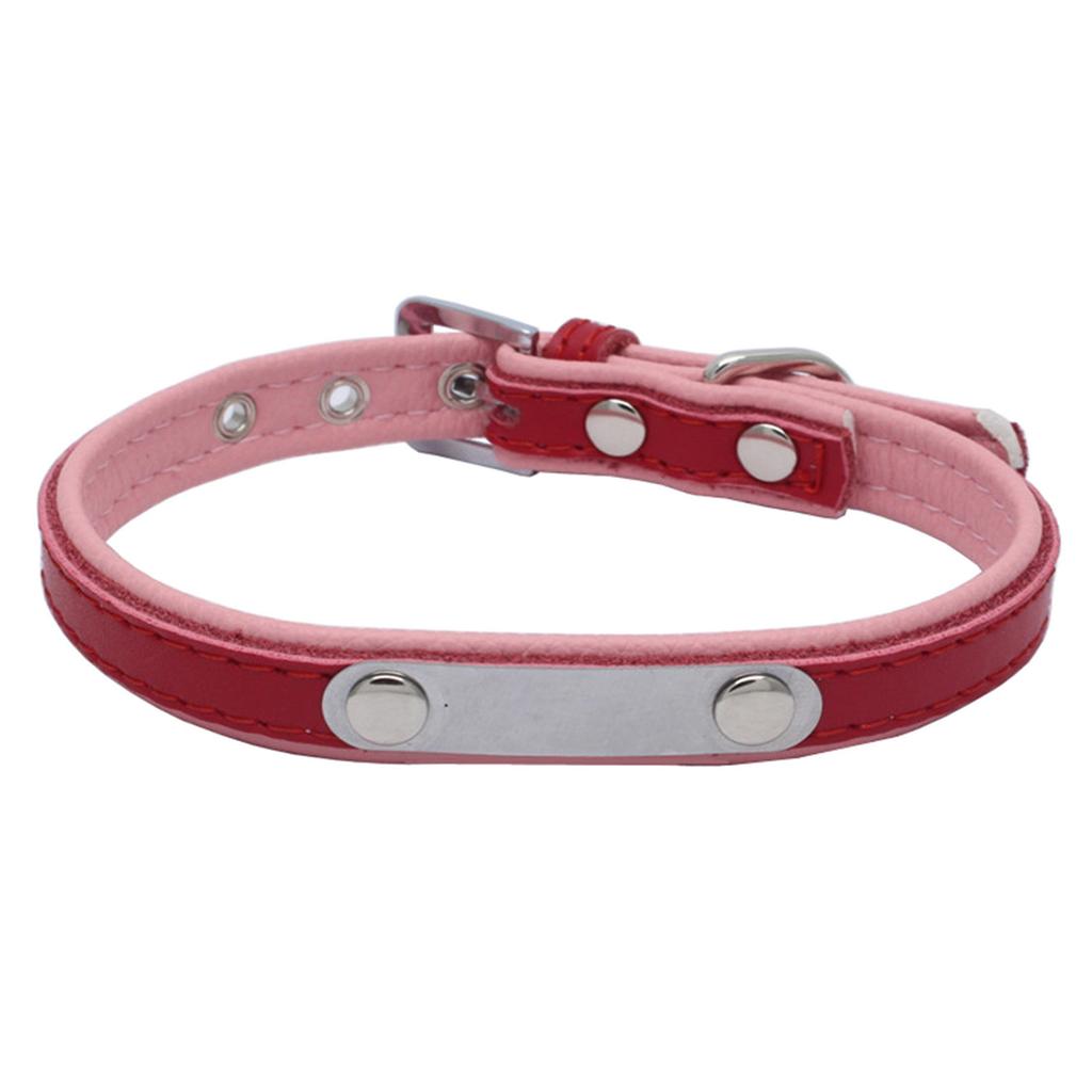 Adjustable PU Leather Pet Dog Cat Collar Neck Strap XS Red+Pink