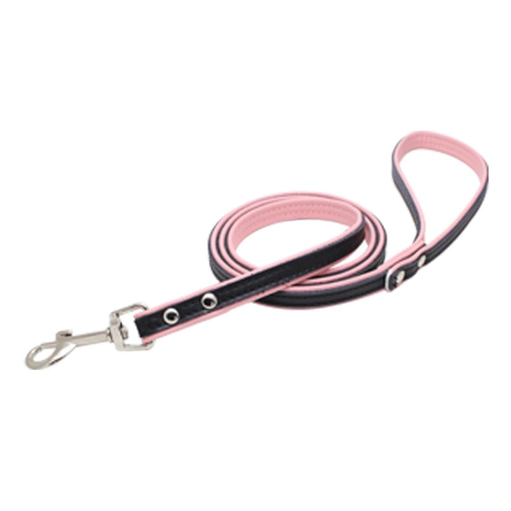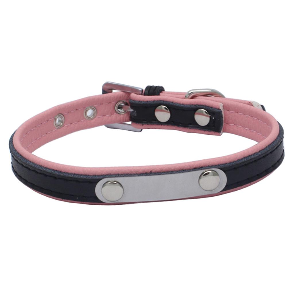 Adjustable PU Leather Pet Dog Cat Collar Neck Strap XXS Black+Pink