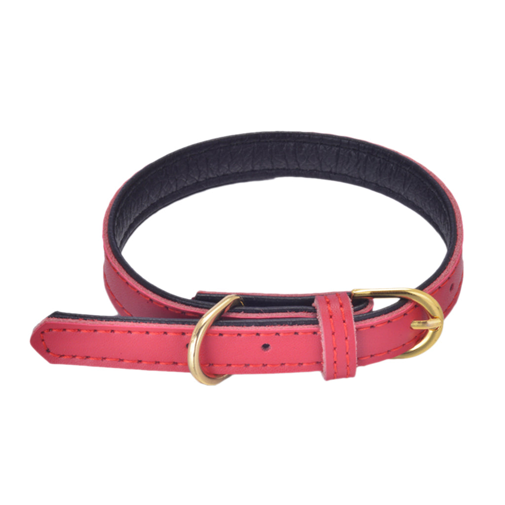 Adjustable PU Leather Pet Puppy Dog Collar Safety Neck Buckle Strap L Red
