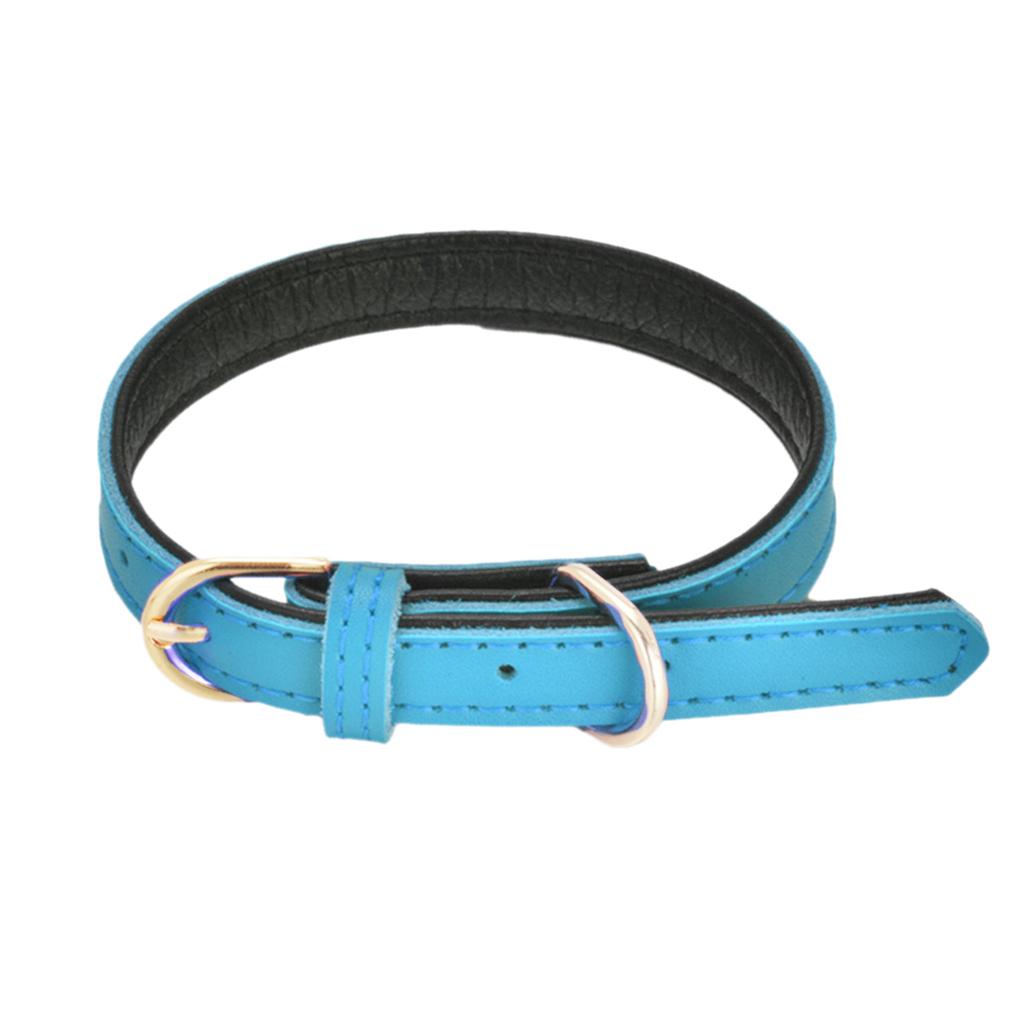 Adjustable PU Leather Pet Puppy Dog Collar Safety Neck Buckle Strap S Blue