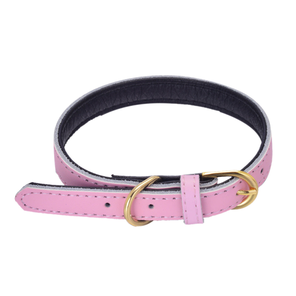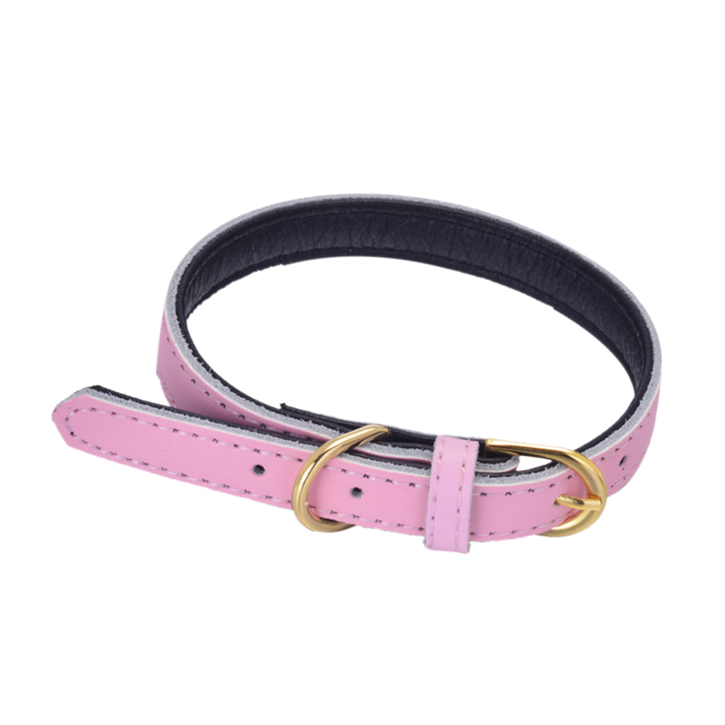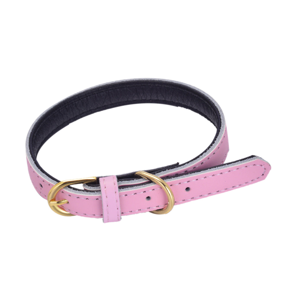 Adjustable PU Leather Pet Puppy Dog Collar Safety Neck Buckle Strap S Pink